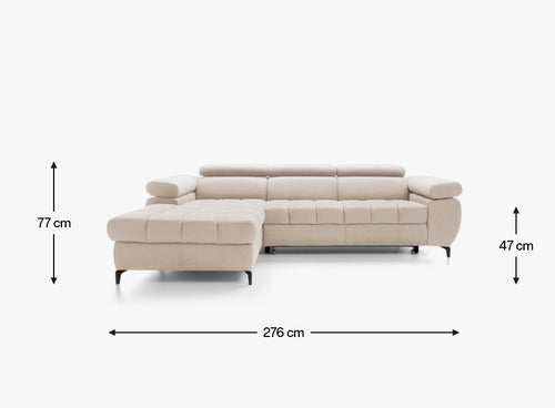 Wyposażony w funkcję spania, pozwala w prosty sposób zamienić salon w wygodną przestrzeń do odpoczynku. Pojemnik na pościel zapewnia dodatkowe miejsce do przechowywania, pomagając utrzymać porządek. Regulowane zagłówki i podłokietniki umożliwiają dostosowanie narożnika do indywidualnych potrzeb, oferując jeszcze większą wygodę. Starannie zaprojektowane detale i nowoczesna linia sprawiają, że Lugano I stanie się stylowym centrum każdego wnętrza.