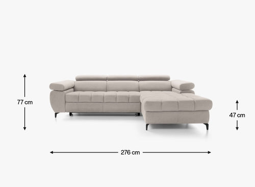 Wyposażony w funkcję spania, pozwala w prosty sposób zamienić salon w wygodną przestrzeń do odpoczynku. Pojemnik na pościel zapewnia dodatkowe miejsce do przechowywania, pomagając utrzymać porządek. Regulowane zagłówki i podłokietniki umożliwiają dostosowanie narożnika do indywidualnych potrzeb, oferując jeszcze większą wygodę. Starannie zaprojektowane detale i nowoczesna linia sprawiają, że Lugano I stanie się stylowym centrum każdego wnętrza.