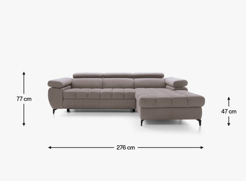 Wyposażony w funkcję spania, pozwala w prosty sposób zamienić salon w wygodną przestrzeń do odpoczynku. Pojemnik na pościel zapewnia dodatkowe miejsce do przechowywania, pomagając utrzymać porządek. Regulowane zagłówki i podłokietniki umożliwiają dostosowanie narożnika do indywidualnych potrzeb, oferując jeszcze większą wygodę. Starannie zaprojektowane detale i nowoczesna linia sprawiają, że Lugano I stanie się stylowym centrum każdego wnętrza.