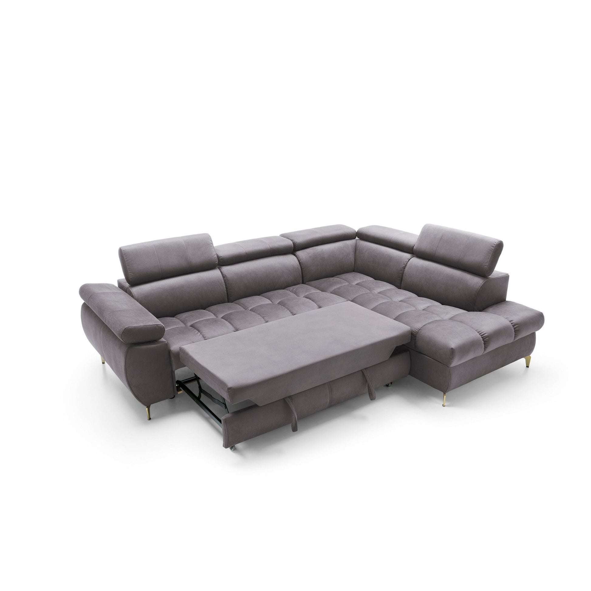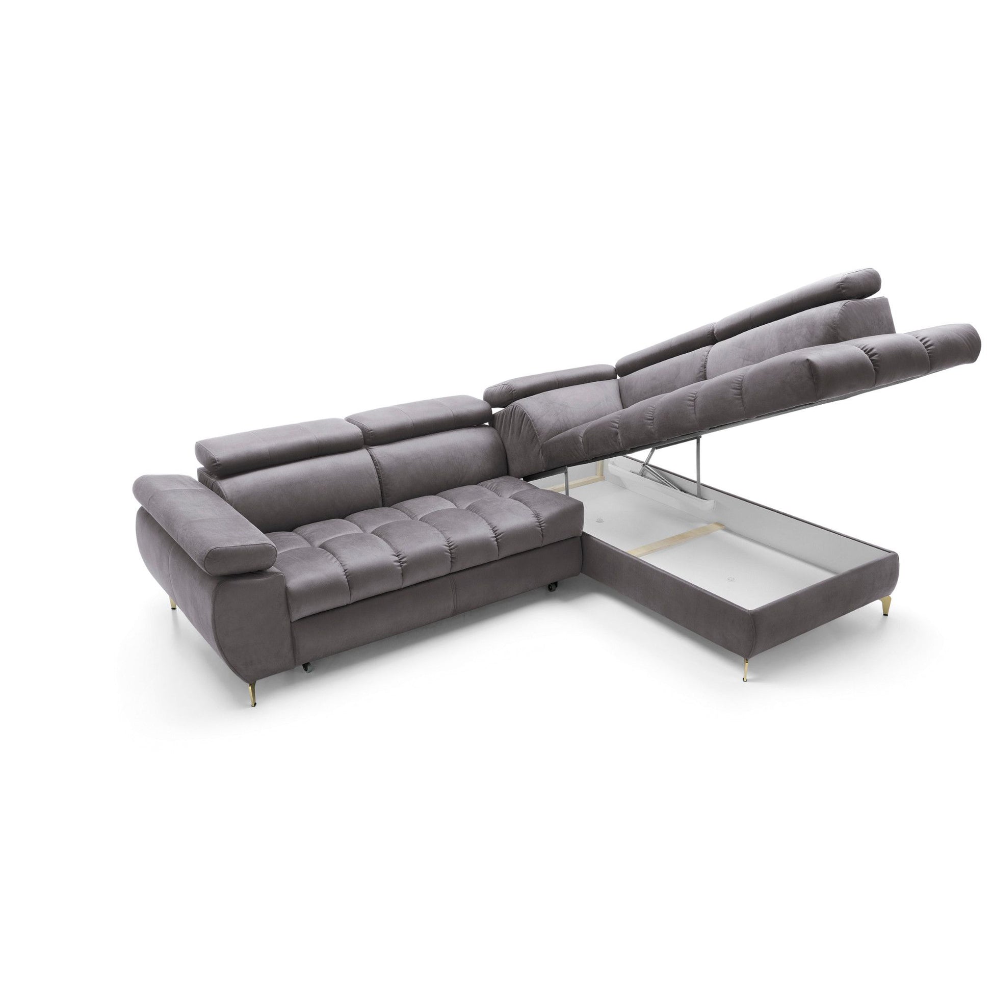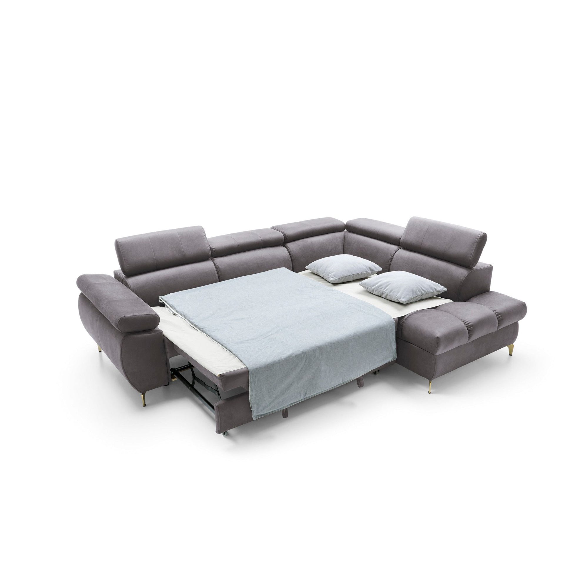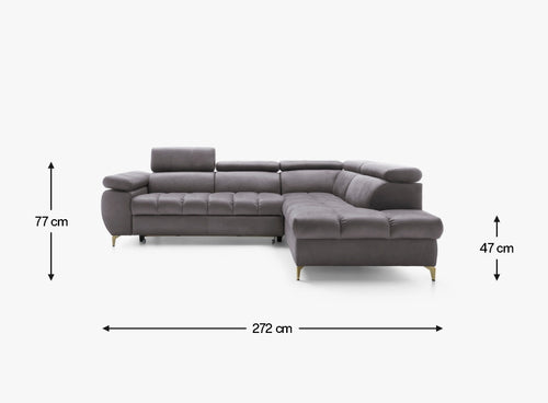Narożnik został wyposażony w funkcję spania i pojemny schowek, oferując mnóstwo miejsca zarówno do odpoczynku, jak i do przechowywania kołder czy poduszek. Przestronne powierzchnie zapewniają wygodny sen i praktyczność, która sprosta oczekiwaniom nawet najbardziej wymagających użytkowników.