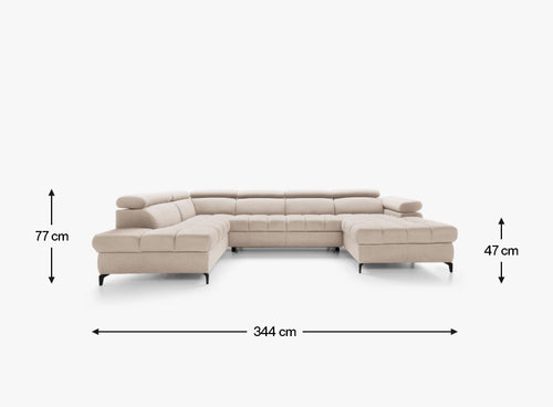 Ten przestronny mebel wyróżnia się miękkimi, pikowanymi siedziskami oraz regulowanymi zagłówkami, zapewniającymi idealne podparcie dla głowy i odprężenie mięśni.