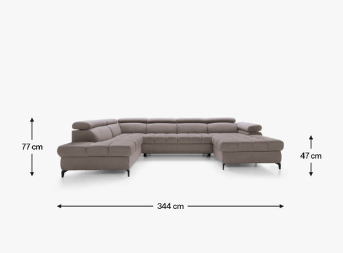 Ten przestronny mebel wyróżnia się miękkimi, pikowanymi siedziskami oraz regulowanymi zagłówkami, zapewniającymi idealne podparcie dla głowy i odprężenie mięśni.