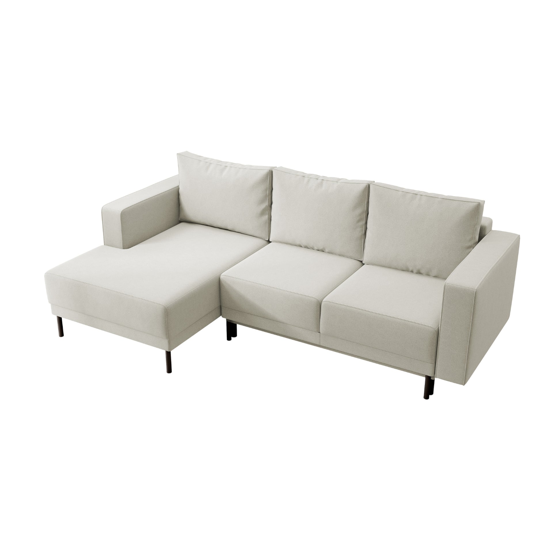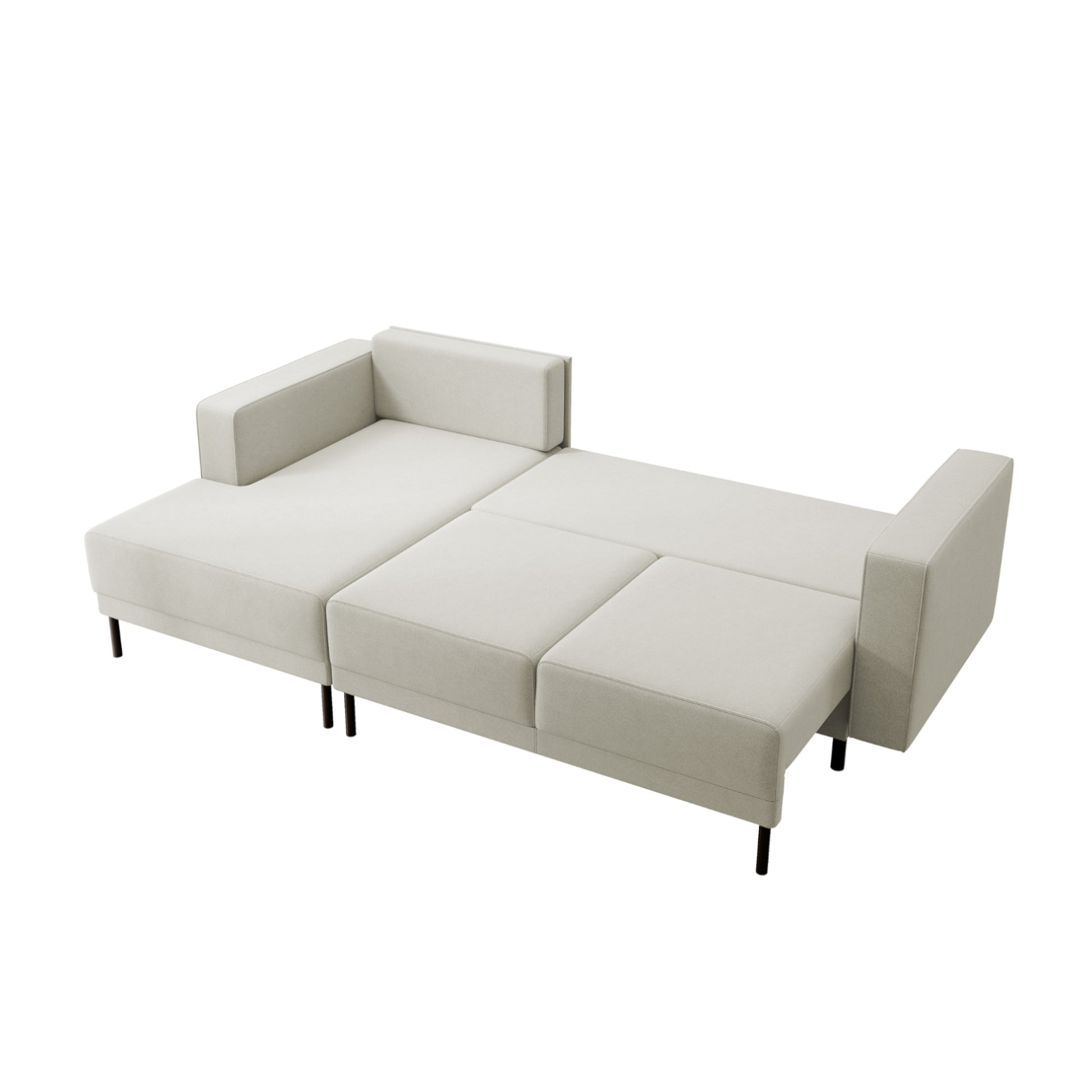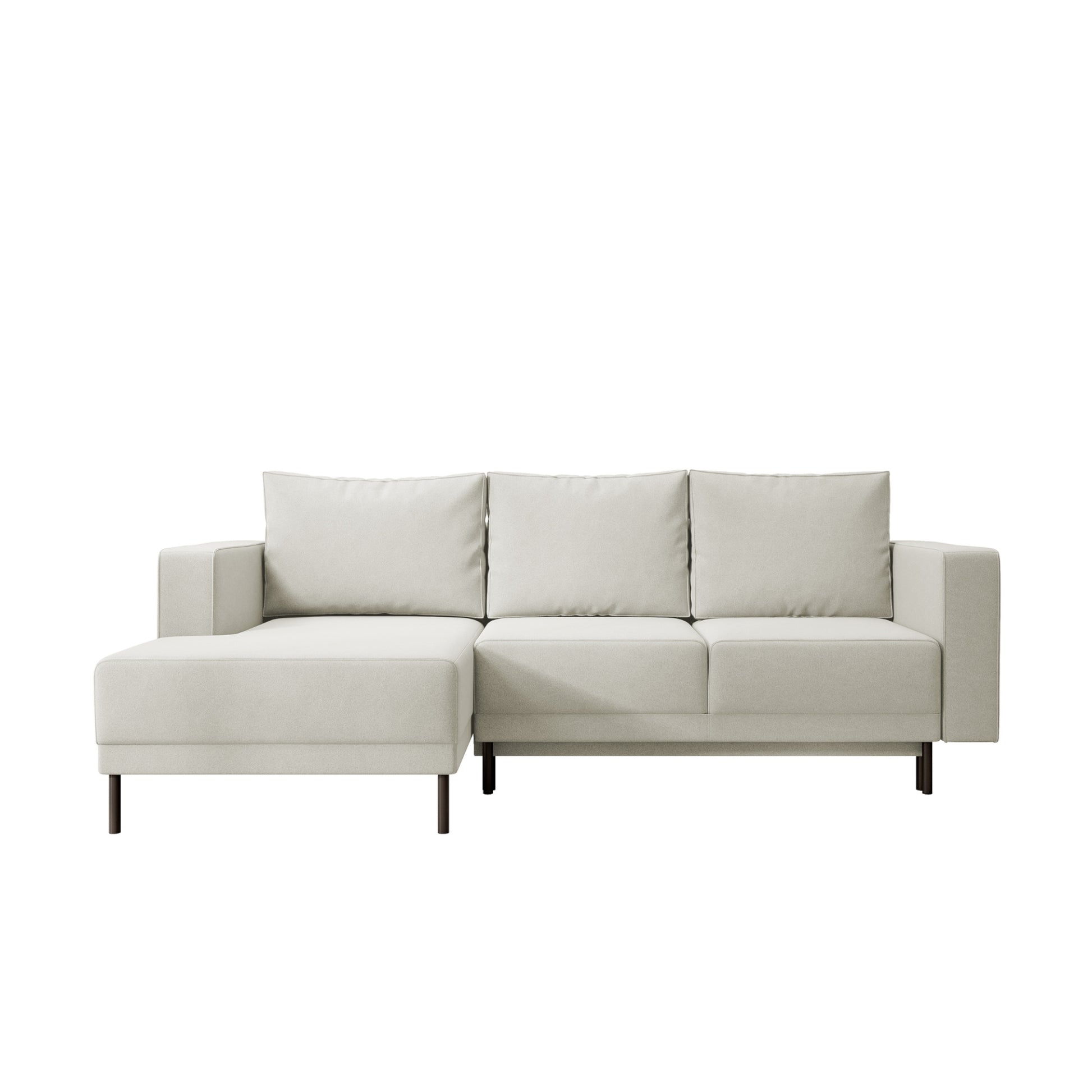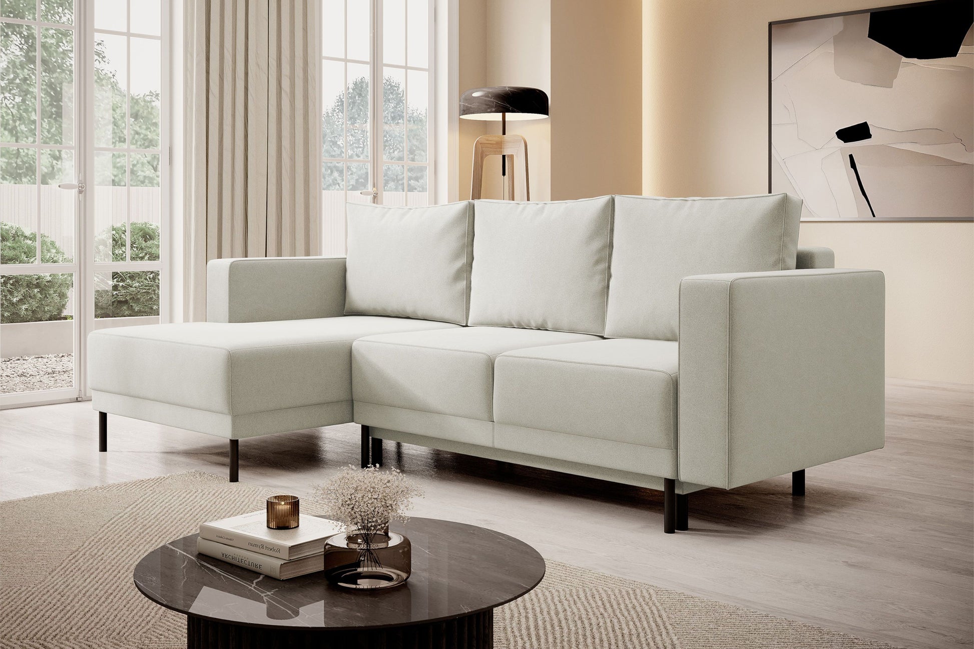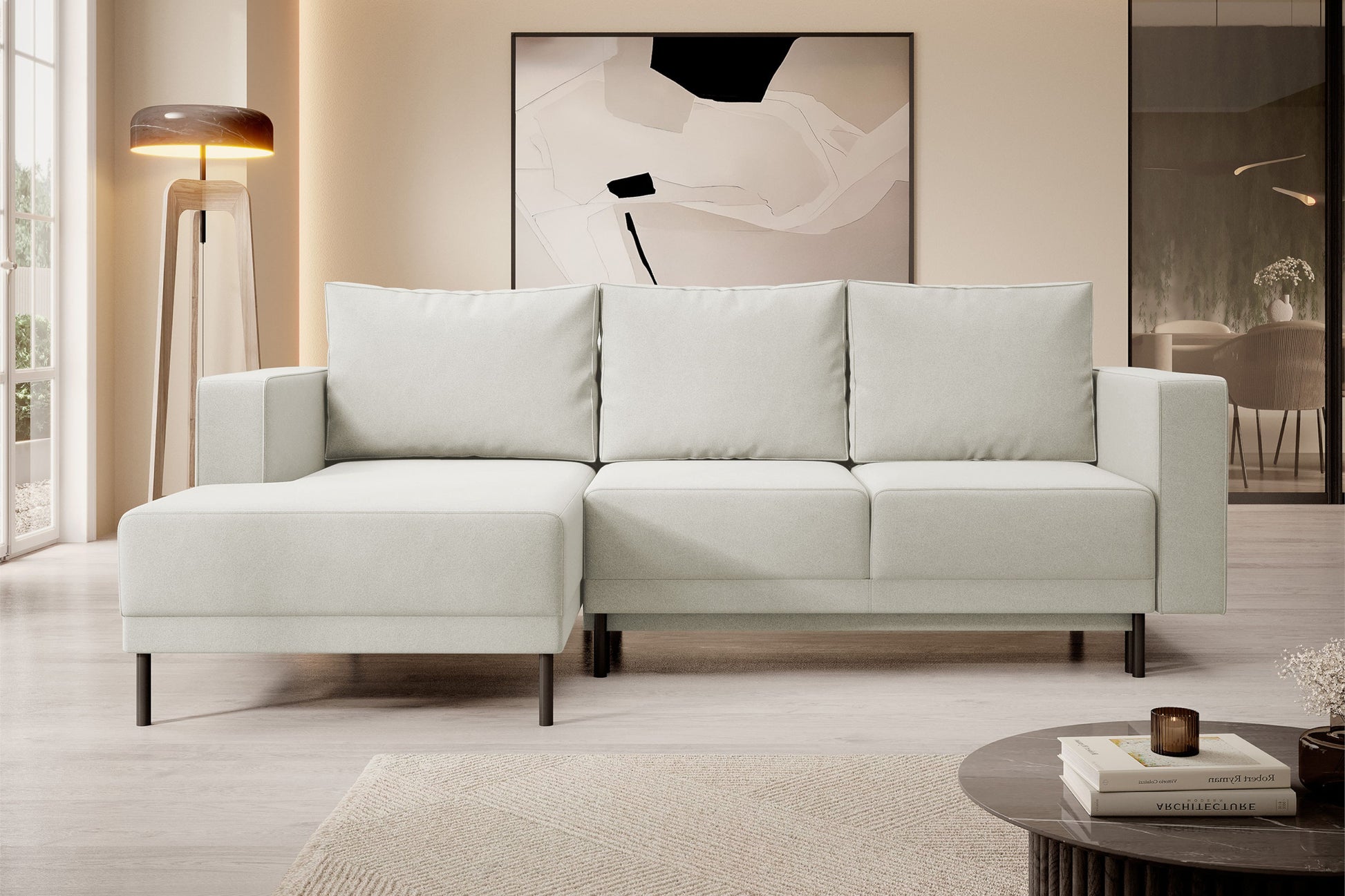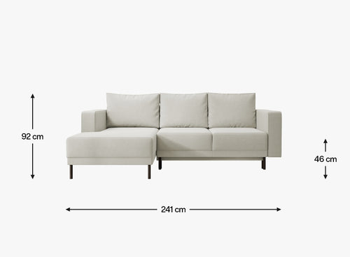 Podniesiony na wysokich, smukłych nogach, mebel zyskuje lekkość wizualną, nie tracąc przy tym nic z solidności. Lewo, lub prawostronna orientacja narożnika sprawia, że świetnie wpasuje się w różnorodne układy pomieszczeń, podkreślając ich nowoczesny charakter.