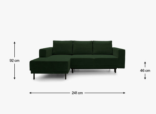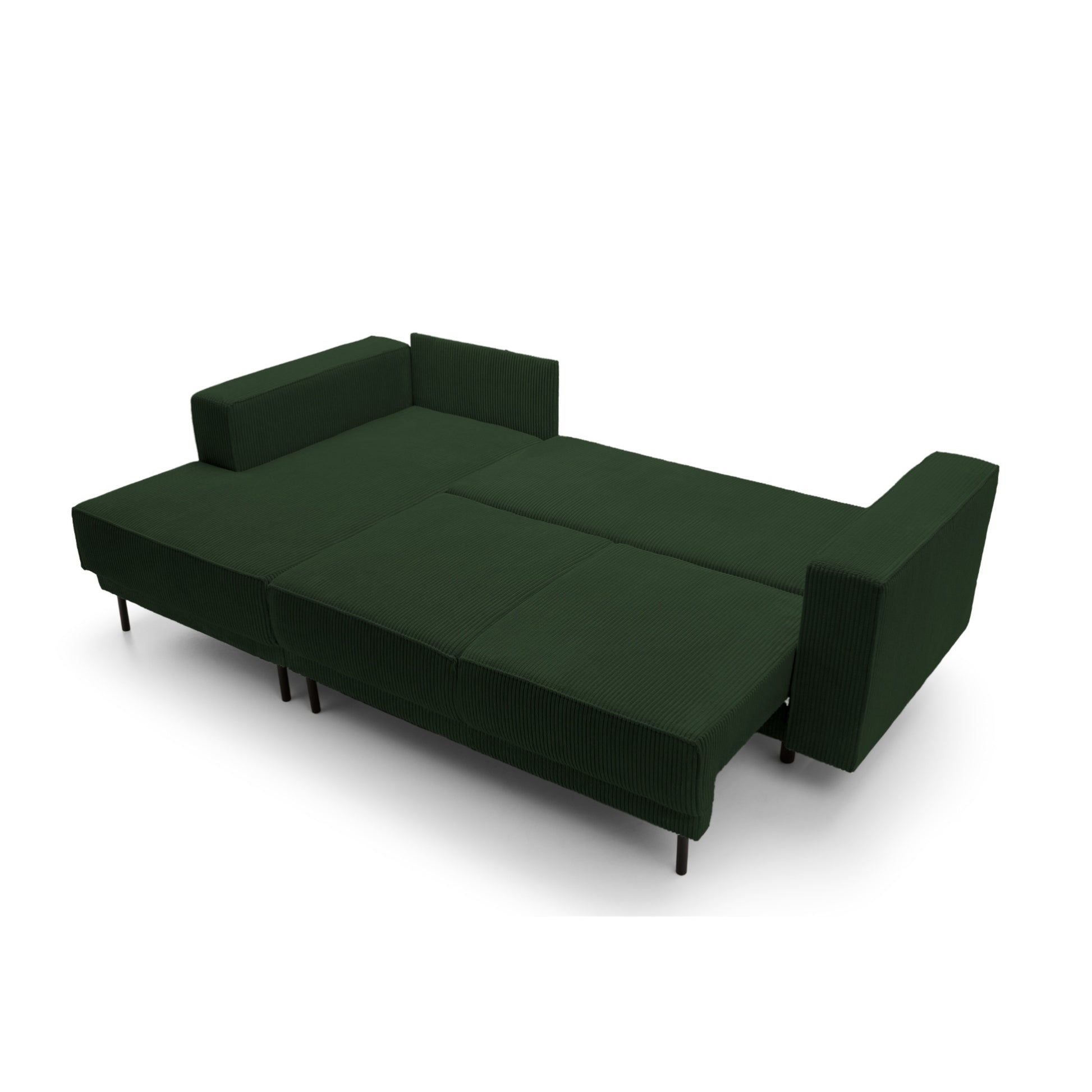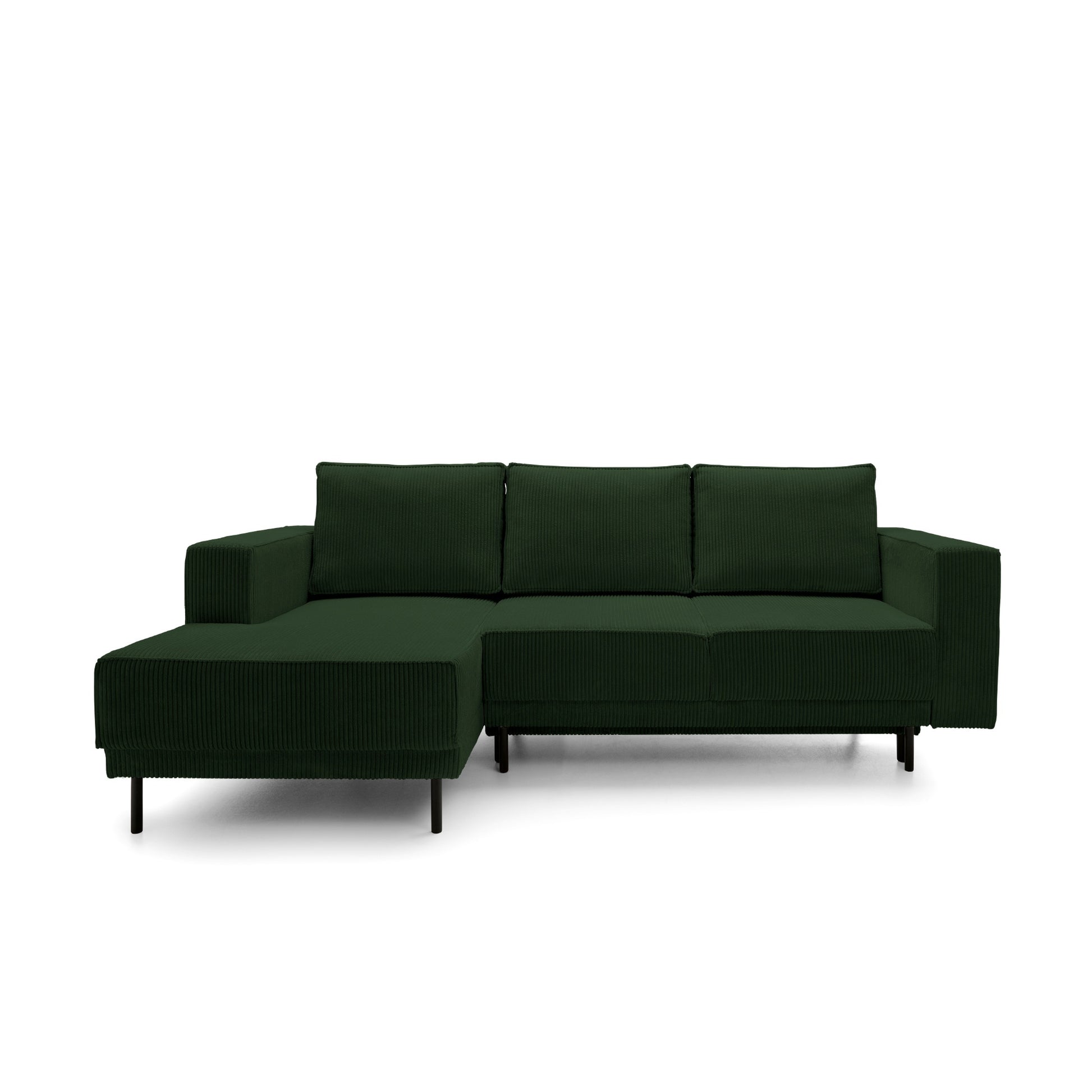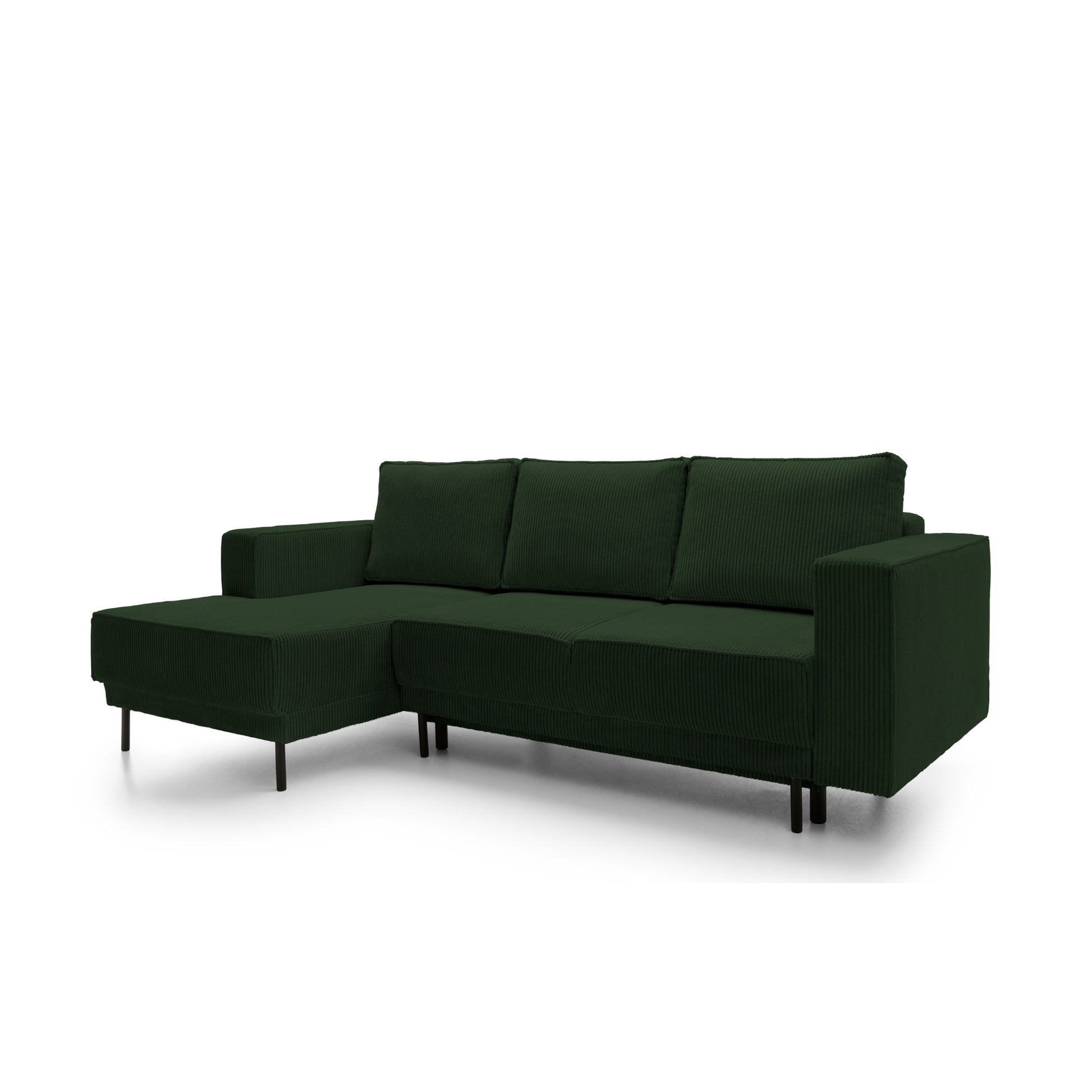 Podniesiony na wysokich, smukłych nogach, mebel zyskuje lekkość wizualną, nie tracąc przy tym nic z solidności. Lewo, lub prawostronna orientacja narożnika sprawia, że świetnie wpasuje się w różnorodne układy pomieszczeń, podkreślając ich nowoczesny charakter.