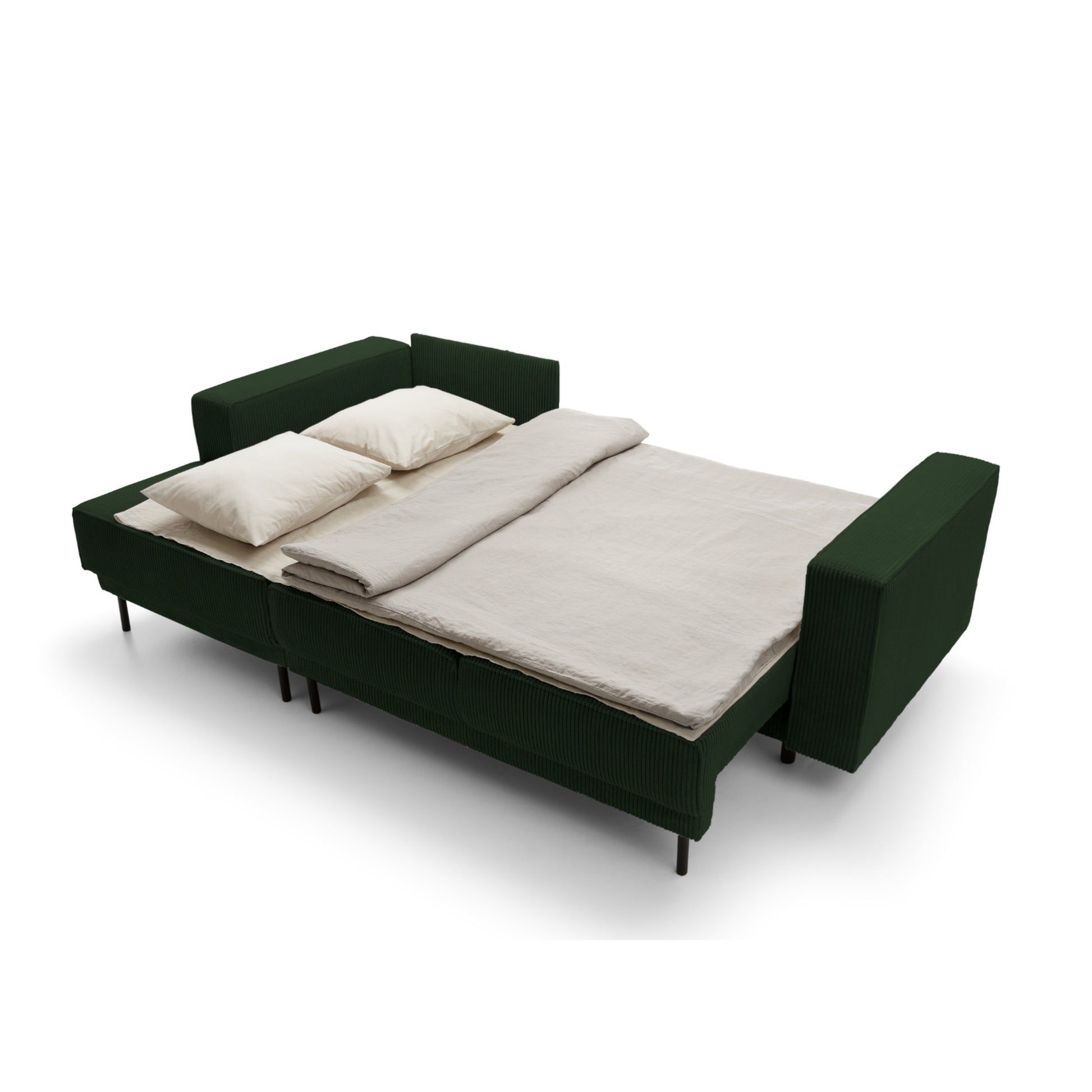 Delikatnie wyprofilowane poduchy oparciowe oraz głębokie, miękkie siedzisko zapraszają do odpoczynku – niezależnie od pory dnia. Dzięki praktycznej funkcji spania Modo I z łatwością zmienia się w wygodne łóżko, oferując dodatkową przestrzeń do regeneracji. A pojemny schowek na pościel pozwala zachować porządek i mieć wszystko, co potrzebne, zawsze pod ręką.