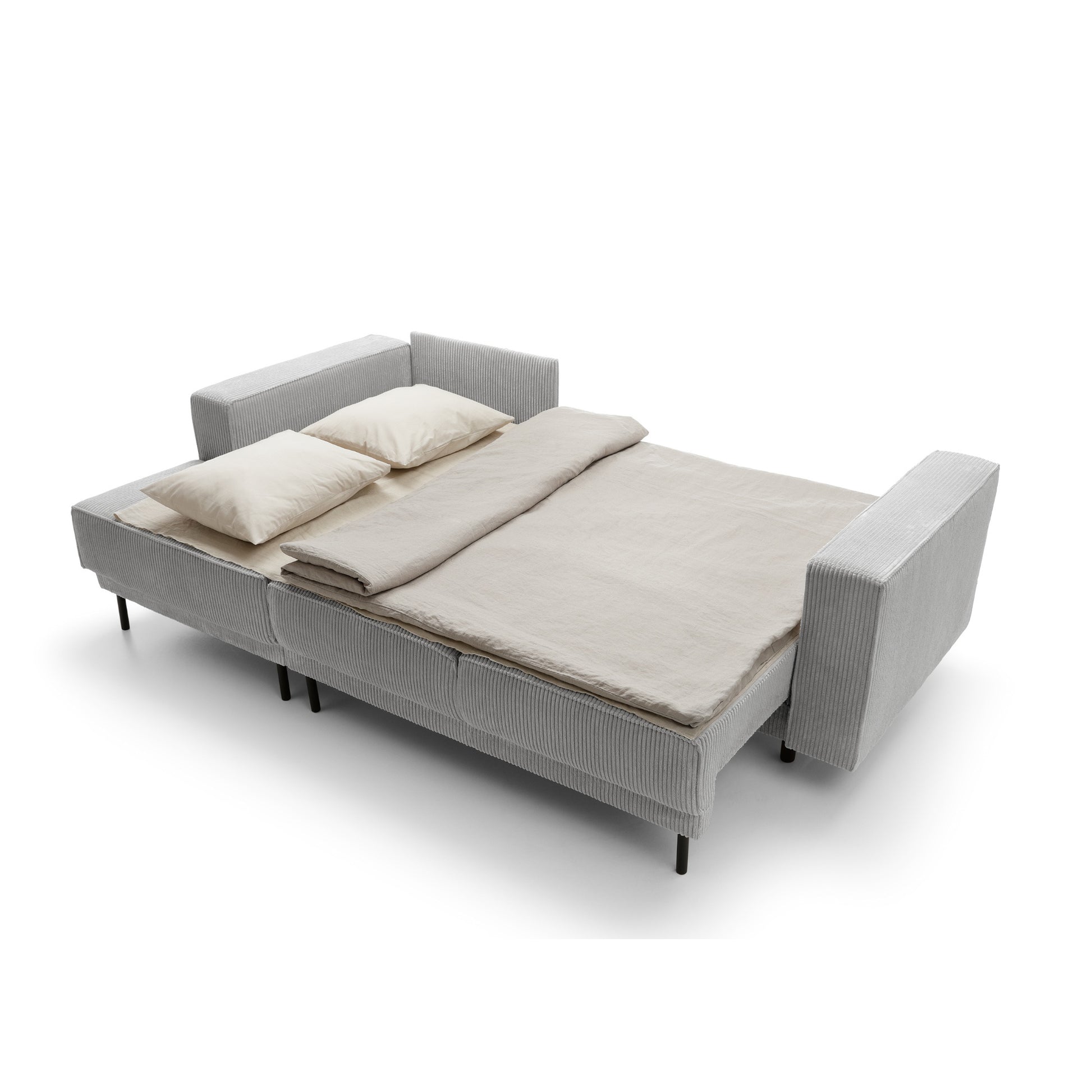 Delikatnie wyprofilowane poduchy oparciowe oraz głębokie, miękkie siedzisko zapraszają do odpoczynku – niezależnie od pory dnia. Dzięki praktycznej funkcji spania Modo I z łatwością zmienia się w wygodne łóżko, oferując dodatkową przestrzeń do regeneracji. A pojemny schowek na pościel pozwala zachować porządek i mieć wszystko, co potrzebne, zawsze pod ręką.