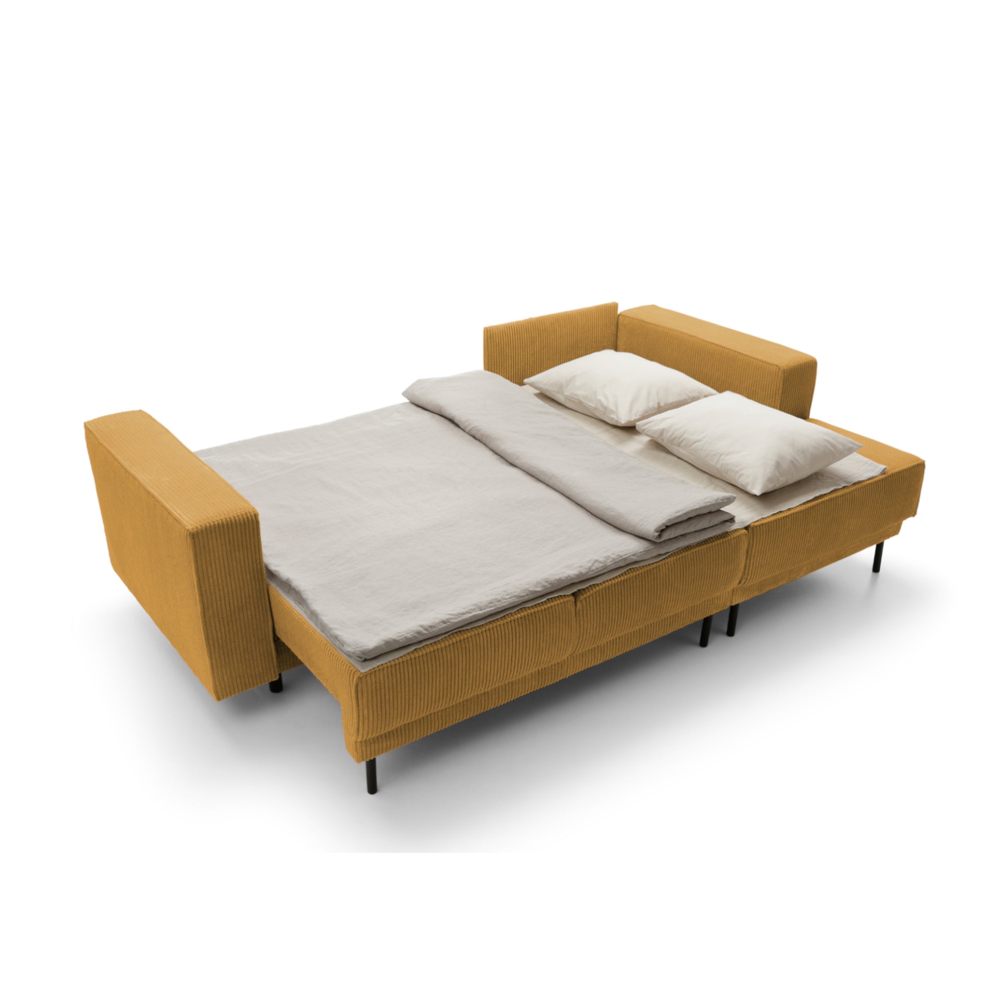 Delikatnie wyprofilowane poduchy oparciowe oraz głębokie, miękkie siedzisko zapraszają do odpoczynku – niezależnie od pory dnia. Dzięki praktycznej funkcji spania Modo I z łatwością zmienia się w wygodne łóżko, oferując dodatkową przestrzeń do regeneracji. A pojemny schowek na pościel pozwala zachować porządek i mieć wszystko, co potrzebne, zawsze pod ręką.