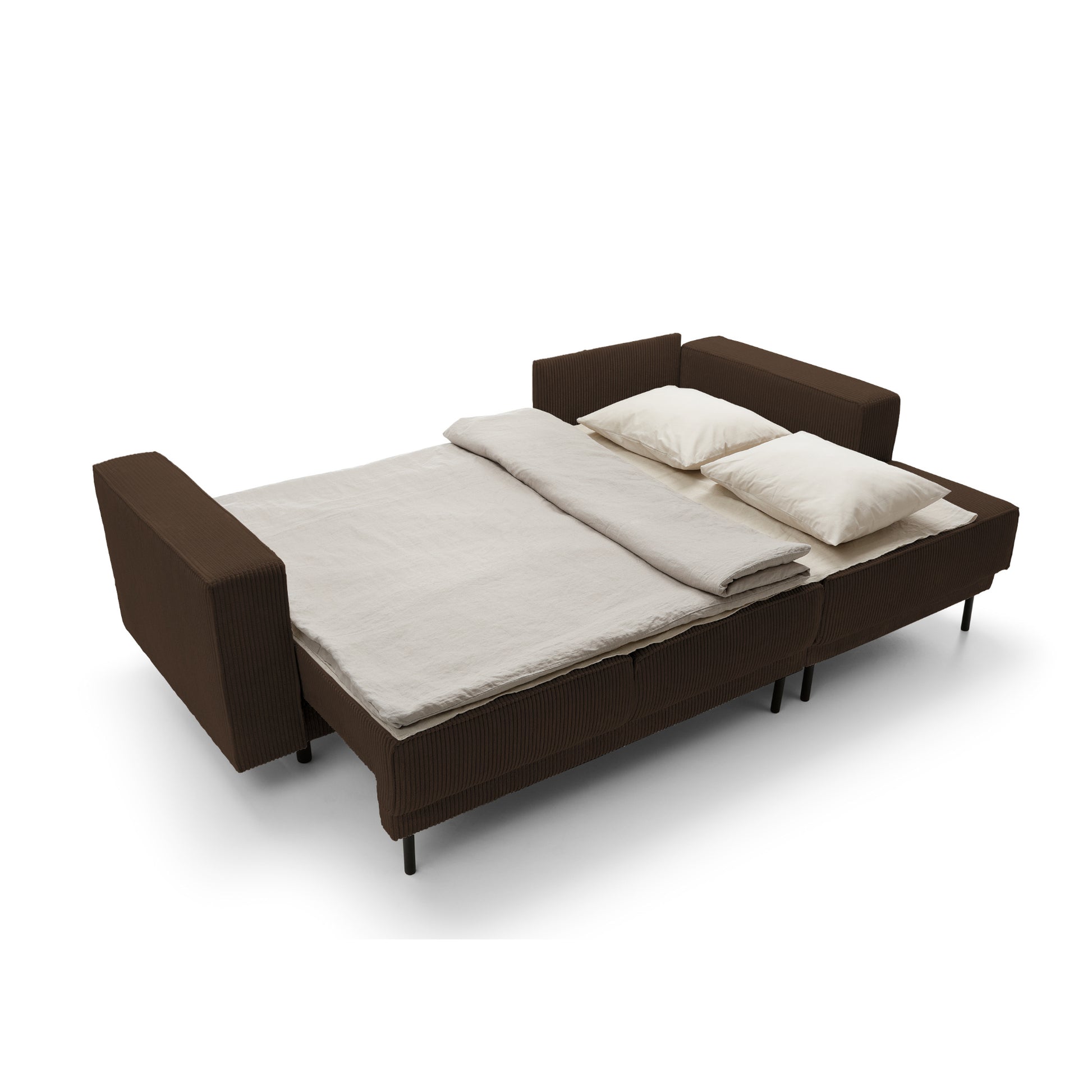 Delikatnie wyprofilowane poduchy oparciowe oraz głębokie, miękkie siedzisko zapraszają do odpoczynku – niezależnie od pory dnia. Dzięki praktycznej funkcji spania Modo I z łatwością zmienia się w wygodne łóżko, oferując dodatkową przestrzeń do regeneracji. A pojemny schowek na pościel pozwala zachować porządek i mieć wszystko, co potrzebne, zawsze pod ręką.