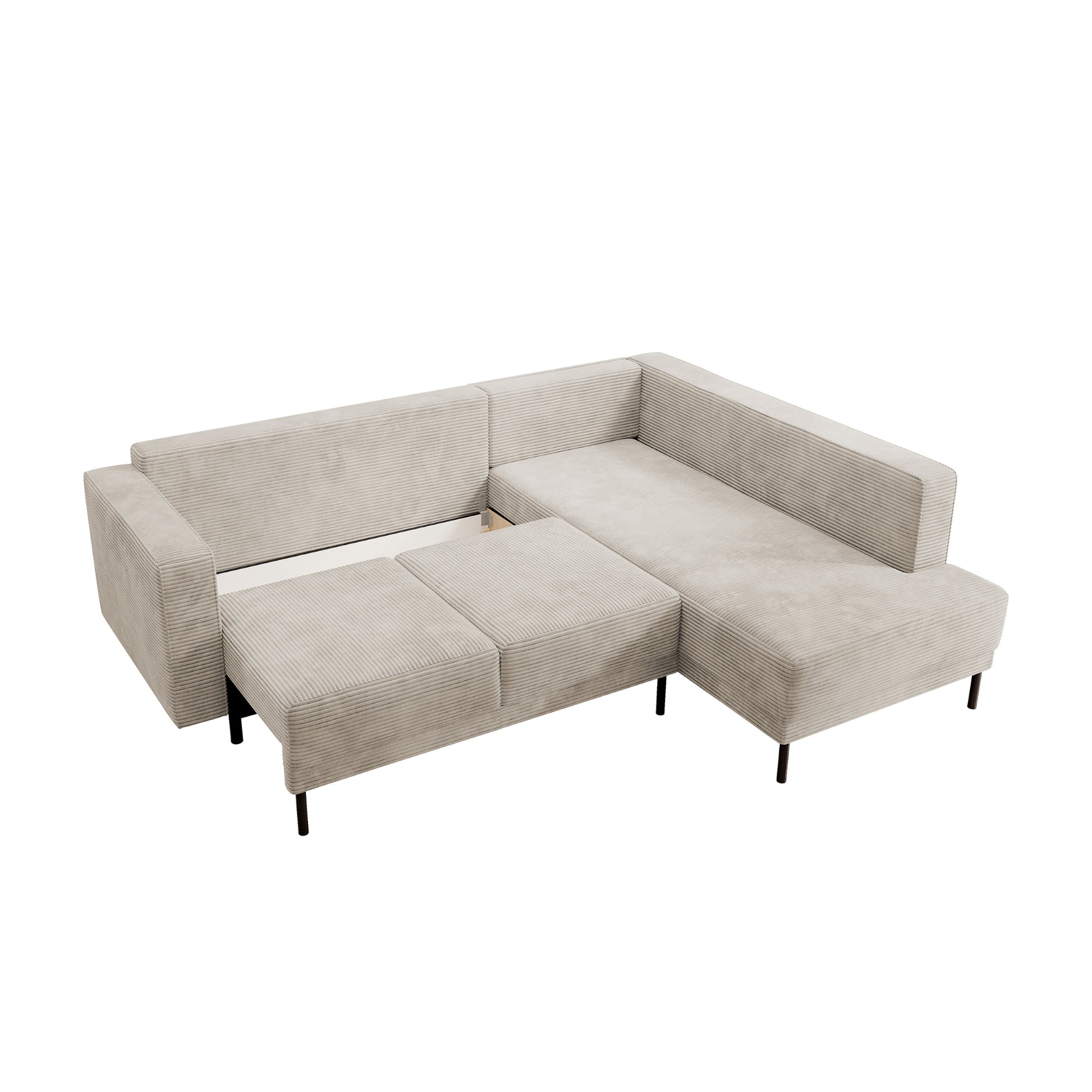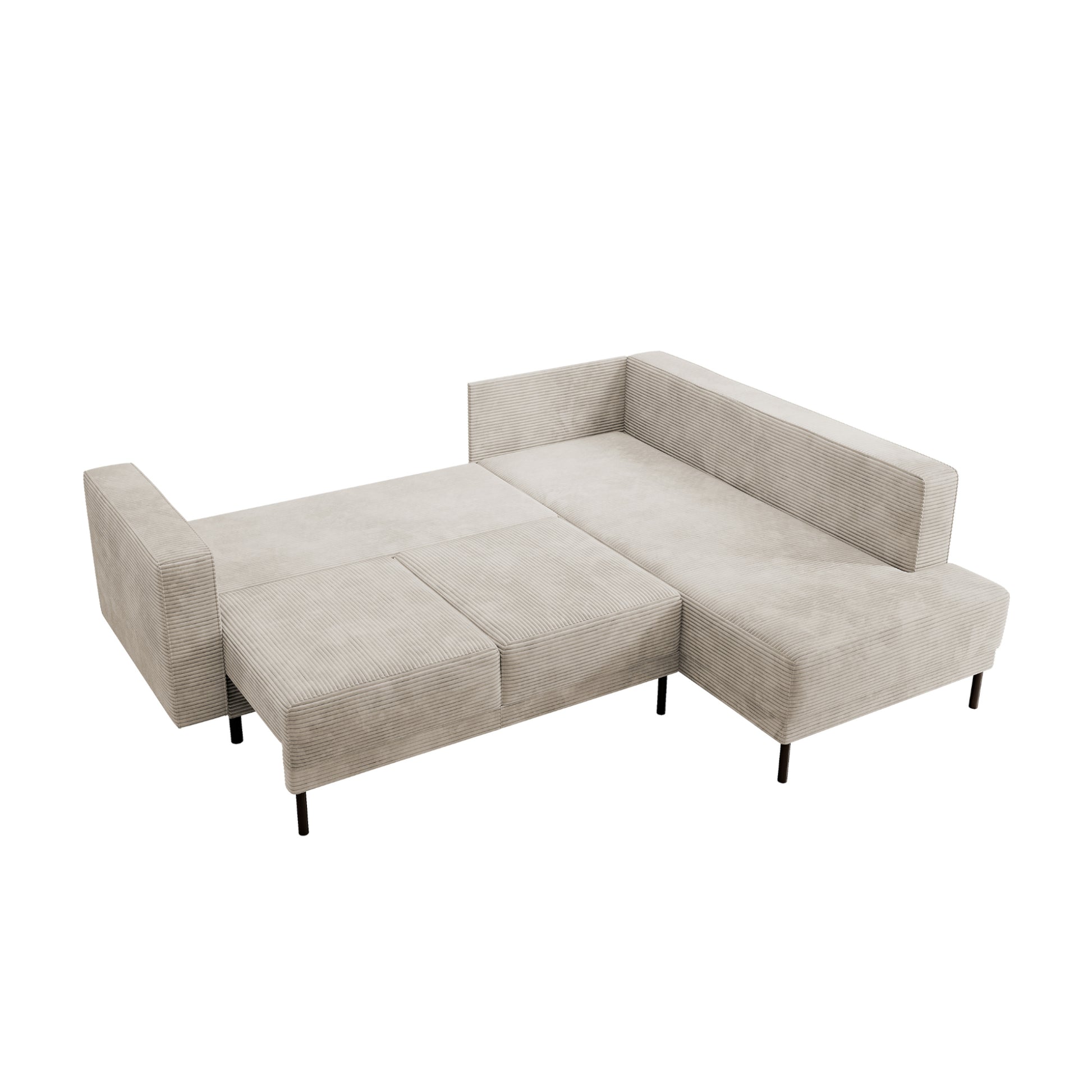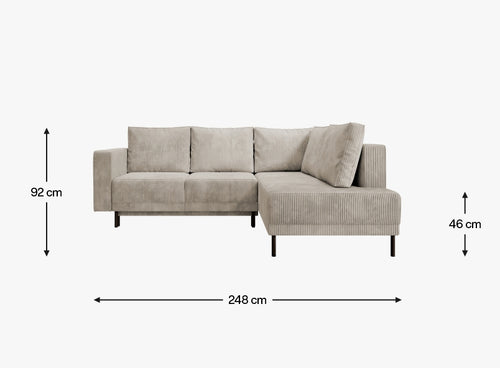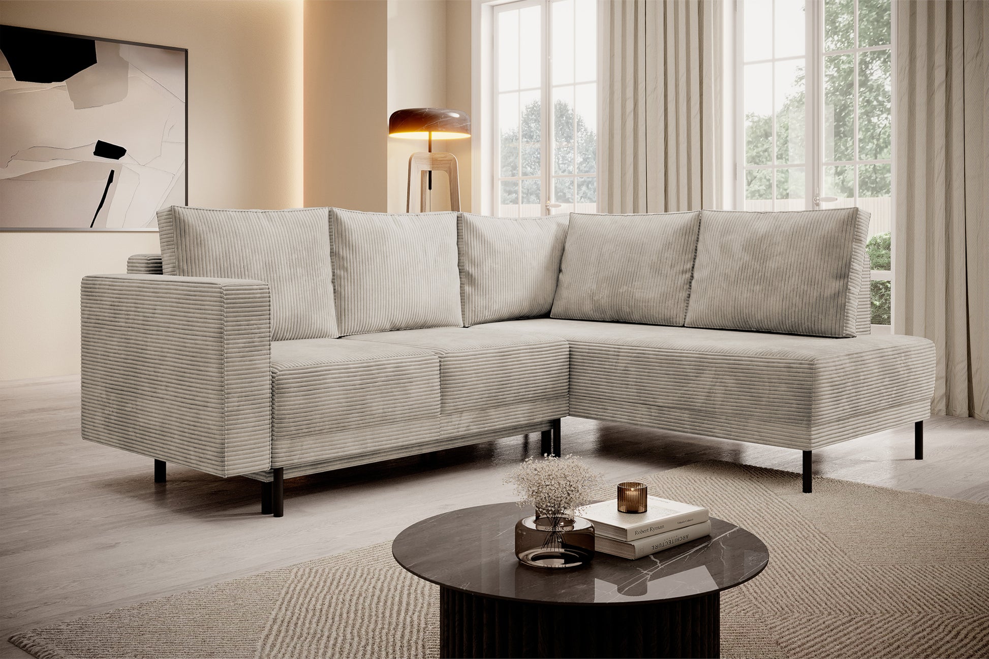 Miękkie, głębokie siedzisko i obszerne poduchy oparciowe zapraszają do relaksu, a wysoka, smukła noga dodaje bryle lekkości i elegancji. Praktyczna funkcja spania i pojemny schowek na pościel czynią z niego nie tylko estetyczny, ale i funkcjonalny wybór – idealny zarówno na leniwe popołudnia, jak i spontaniczne nocowanie.