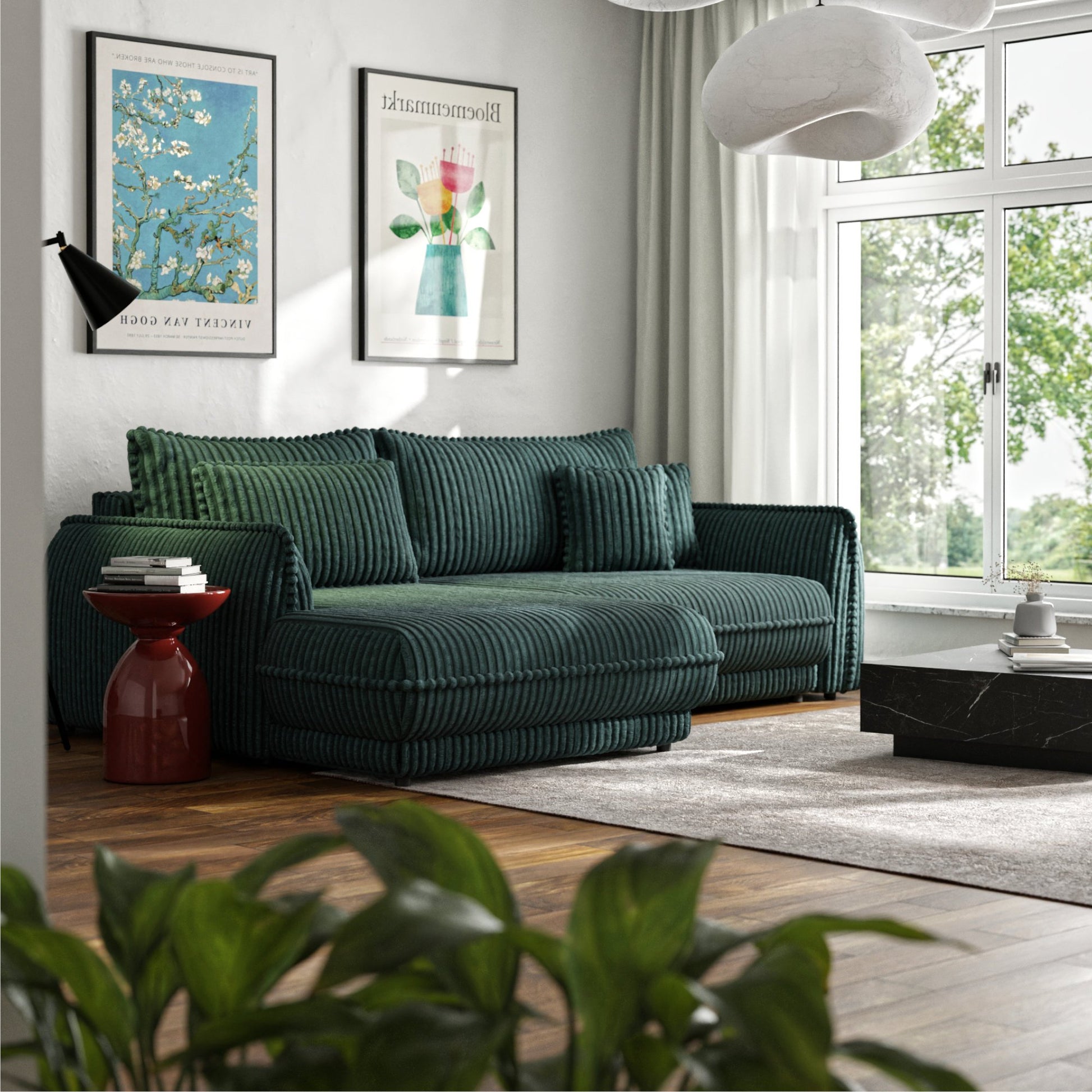 Mojave I to narożnik z funkcją spania i pojemnikiem na pościel, stworzony z myślą o miłośnikach nowoczesnego minimalizmu i ponadczasowego komfortu. Prosta bryła mebla została podkreślona ozdobną kedrą, która dodaje mu subtelnej elegancji, sprawiając, że narożnik doskonale odnajdzie się zarówno w nowoczesnych, jak i klasycznych wnętrzach.
