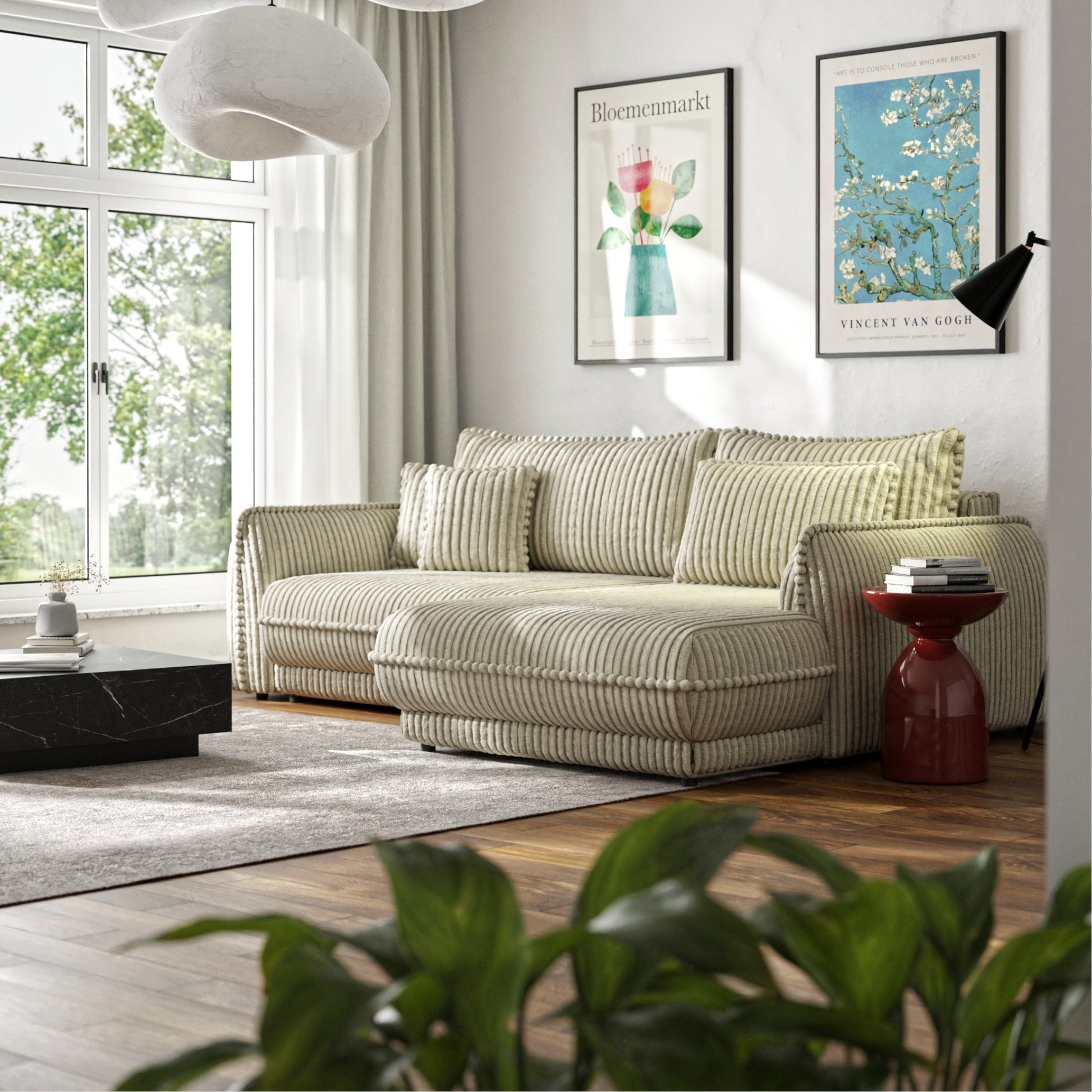 Mojave I to narożnik z funkcją spania i pojemnikiem na pościel, stworzony z myślą o miłośnikach nowoczesnego minimalizmu i ponadczasowego komfortu. Prosta bryła mebla została podkreślona ozdobną kedrą, która dodaje mu subtelnej elegancji, sprawiając, że narożnik doskonale odnajdzie się zarówno w nowoczesnych, jak i klasycznych wnętrzach.