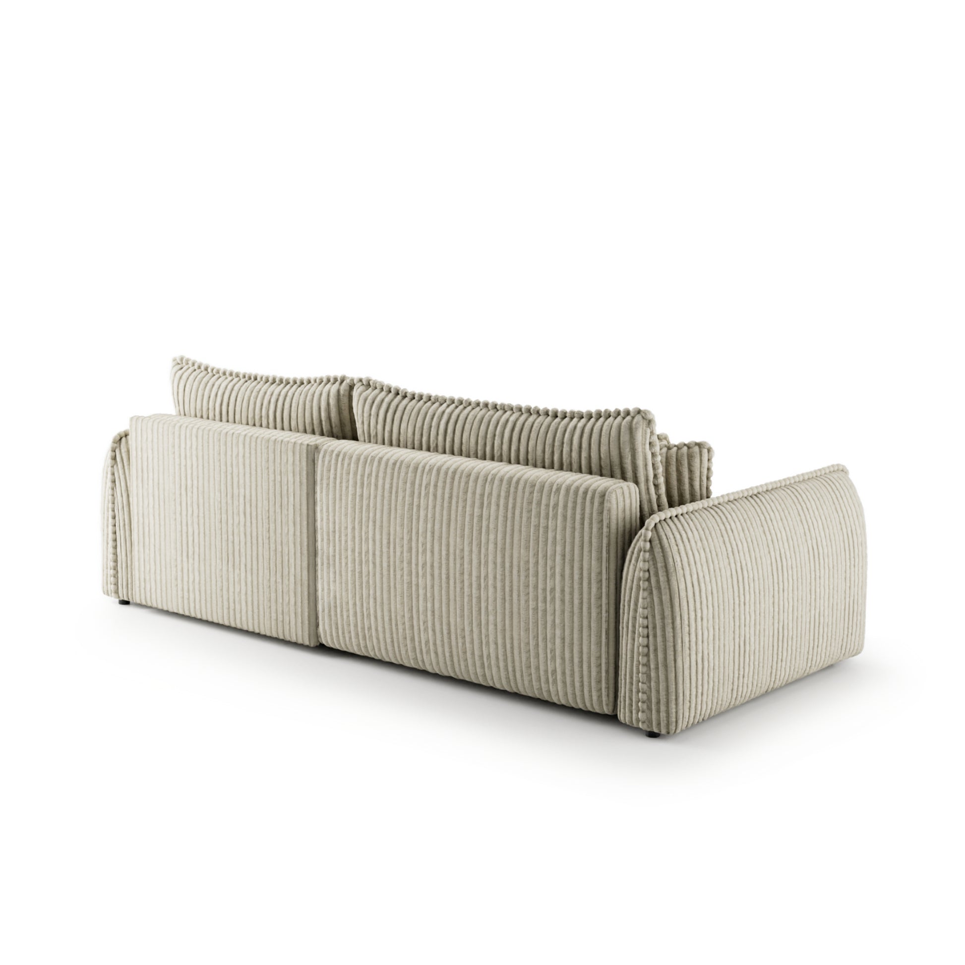 To więcej niż tylko mebel – to przestrzeń do spotkań, odpoczynku i codziennego relaksu. Szerokie boki oraz dwie duże poduszki oparciowe zapewniają idealne podparcie dla kręgosłupa, a miękkie i głębokie siedzisko (do oparcia aż 100 cm) daje poczucie otulenia i wygody – idealne na długie wieczory z książką lub przy filmie.