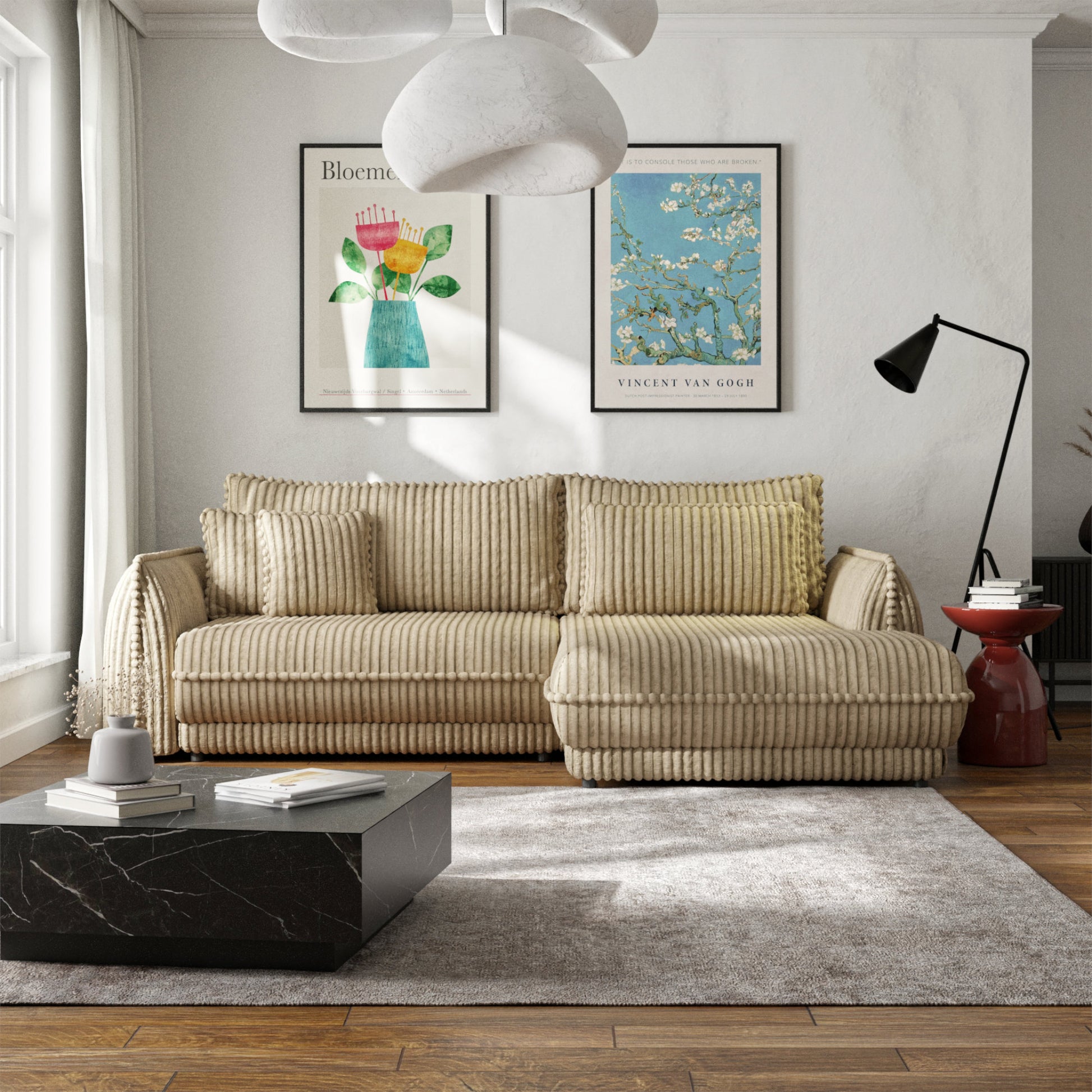 Za dnia Mojave I jest stylowym centrum salonu, a wieczorem – za sprawą łatwego w obsłudze mechanizmu rozkładania – w pełni funkcjonalnym łóżkiem o powierzchni 214 × 160 cm. Praktyczny pojemnik na pościel pozwala sprytnie ukryć koce i poduszki, pomagając zachować ład i porządek w pomieszczeniu.