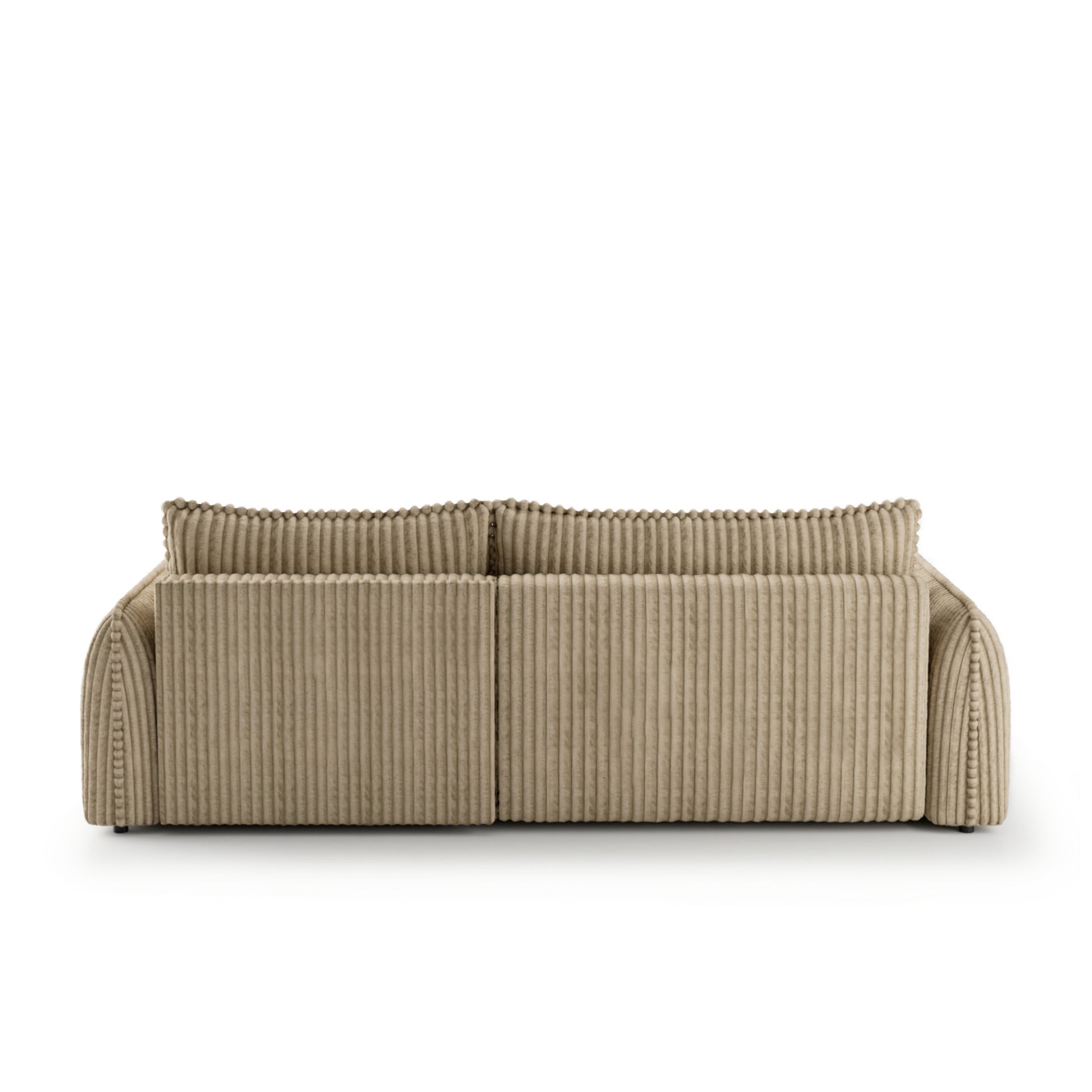To więcej niż tylko mebel – to przestrzeń do spotkań, odpoczynku i codziennego relaksu. Szerokie boki oraz dwie duże poduszki oparciowe zapewniają idealne podparcie dla kręgosłupa, a miękkie i głębokie siedzisko (do oparcia aż 100 cm) daje poczucie otulenia i wygody – idealne na długie wieczory z książką lub przy filmie.