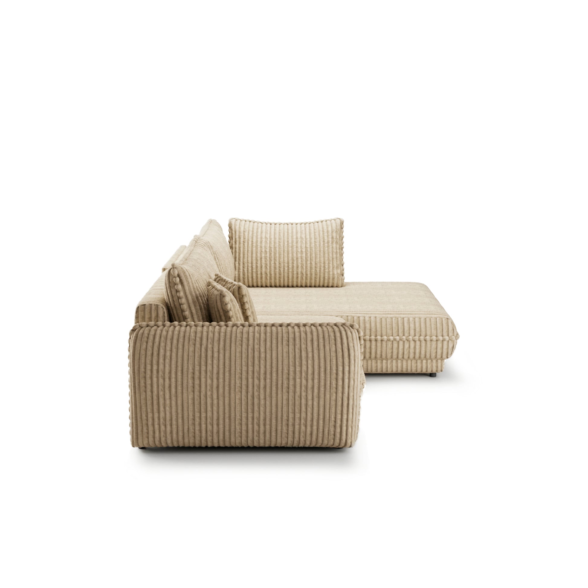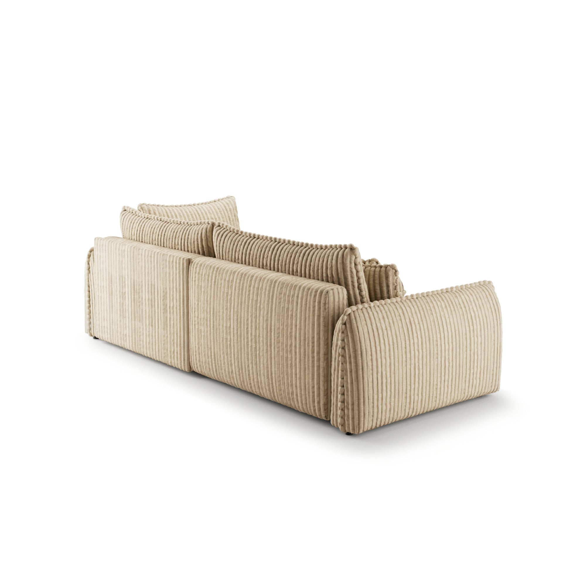 Z wymiarami 280 × 120 × 190 cm, Mojave II oferuje przestronną strefę relaksu, która doskonale sprawdzi się w codziennym użytkowaniu – od leniwych popołudni po rodzinne wieczory. Miękkie, szerokie siedzisko (72 cm głębokości użytkowej) i dwie dodatkowe poduszki oparciowe zapewniają odpowiednie podparcie dla kręgosłupa oraz wysoki komfort wypoczynku. Siedzisko o wysokości 44 cm oraz podłokietniki 68 cm tworzą ergonomiczne warunki do odpoczynku w pozycji siedzącej i leżącej.