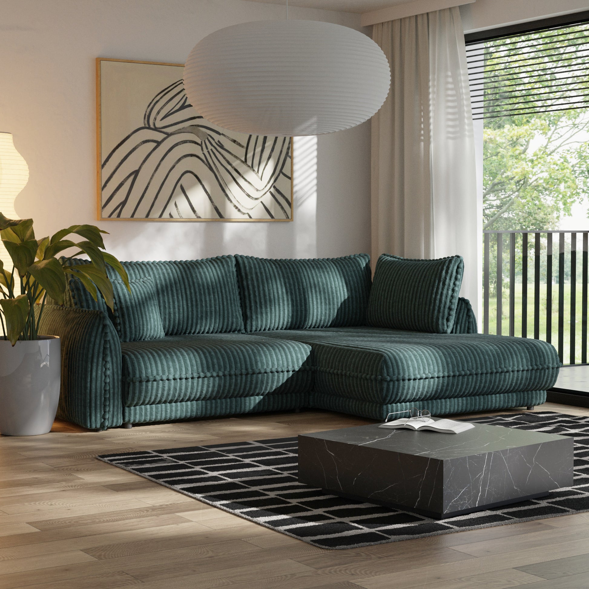 Narożnik wspiera się na niskich, 3-centymetrowych nogach, co dodaje mu stabilności, zachowując przy tym lekkość formy. Mojave II to mebel, który łączy styl z funkcjonalnością, stanowiąc komfortowe i eleganckie serce nowoczesnego salonu.