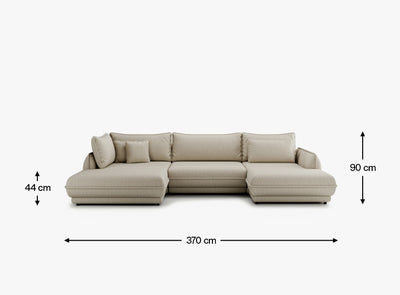 To jednak nie tylko design, ale także przestronność i funkcjonalność, które czynią z Mojave III prawdziwe serce salonu. Szerokie siedzisko (318 cm) w połączeniu z obszernymi poduszkami oparciowymi zapewnia wygodę podczas długich rozmów, seansów filmowych czy popołudniowej drzemki. Dzięki wysokości siedziska 44 cm oraz głębokości do oparcia 100 cm możesz w pełni się odprężyć i znaleźć idealną pozycję do odpoczynku.