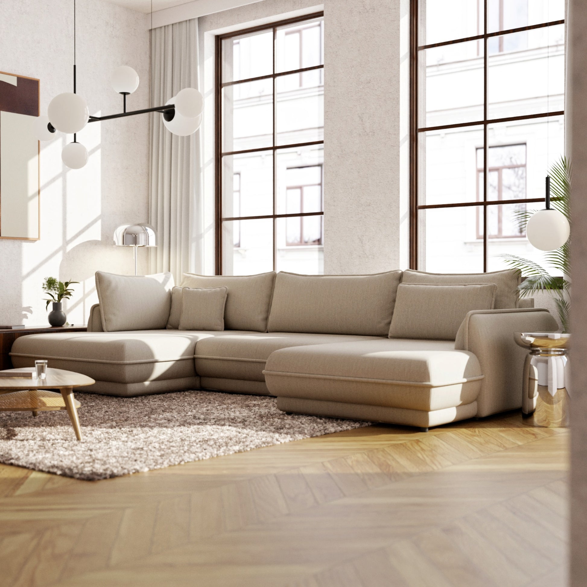 Mojave III to narożnik, który łączy w sobie minimalistyczną formę z maksymalną wygodą. Proste linie, subtelne detale i szerokie boki nadają mu solidny, a jednocześnie elegancki charakter, idealnie wpisujący się w aranżacje nowoczesne, skandynawskie, a także klasyczne.