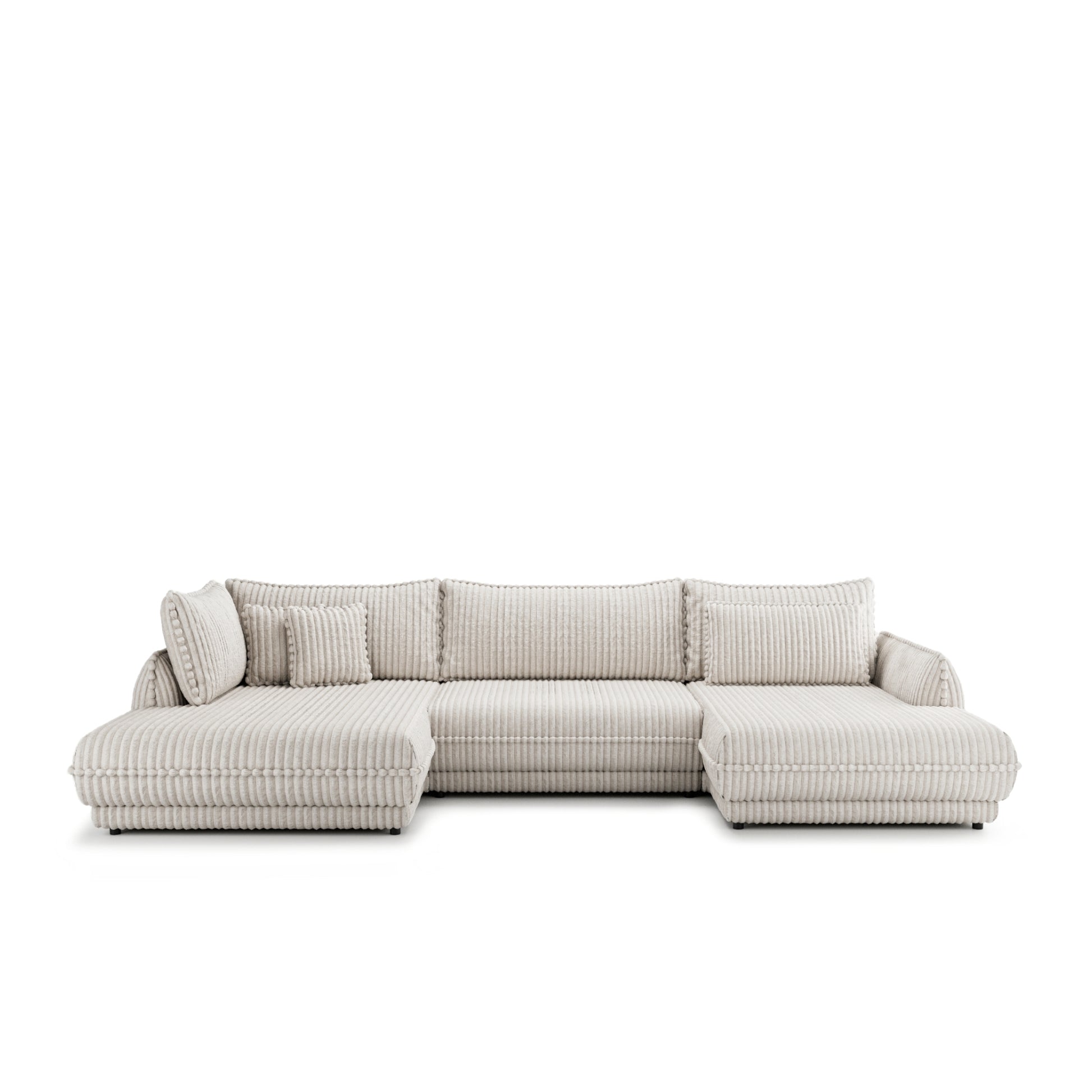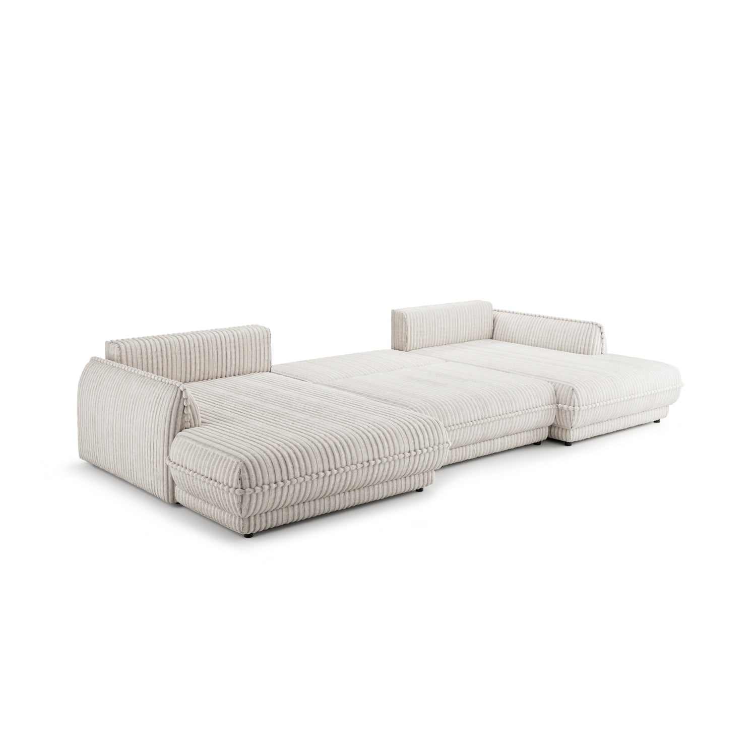 Narożnik został wyposażony w funkcję spania o powierzchni 318 × 160 cm, którą rozłożysz w kilka chwil dzięki prostemu mechanizmowi. To rozwiązanie sprawia, że Mojave III sprawdzi się nie tylko w codziennym użytkowaniu, ale także jako wygodne łóżko dla gości. Dodatkowym atutem jest praktyczny pojemnik na pościel, który pozwala łatwo przechować koce i poduszki, dbając o porządek w salonie.