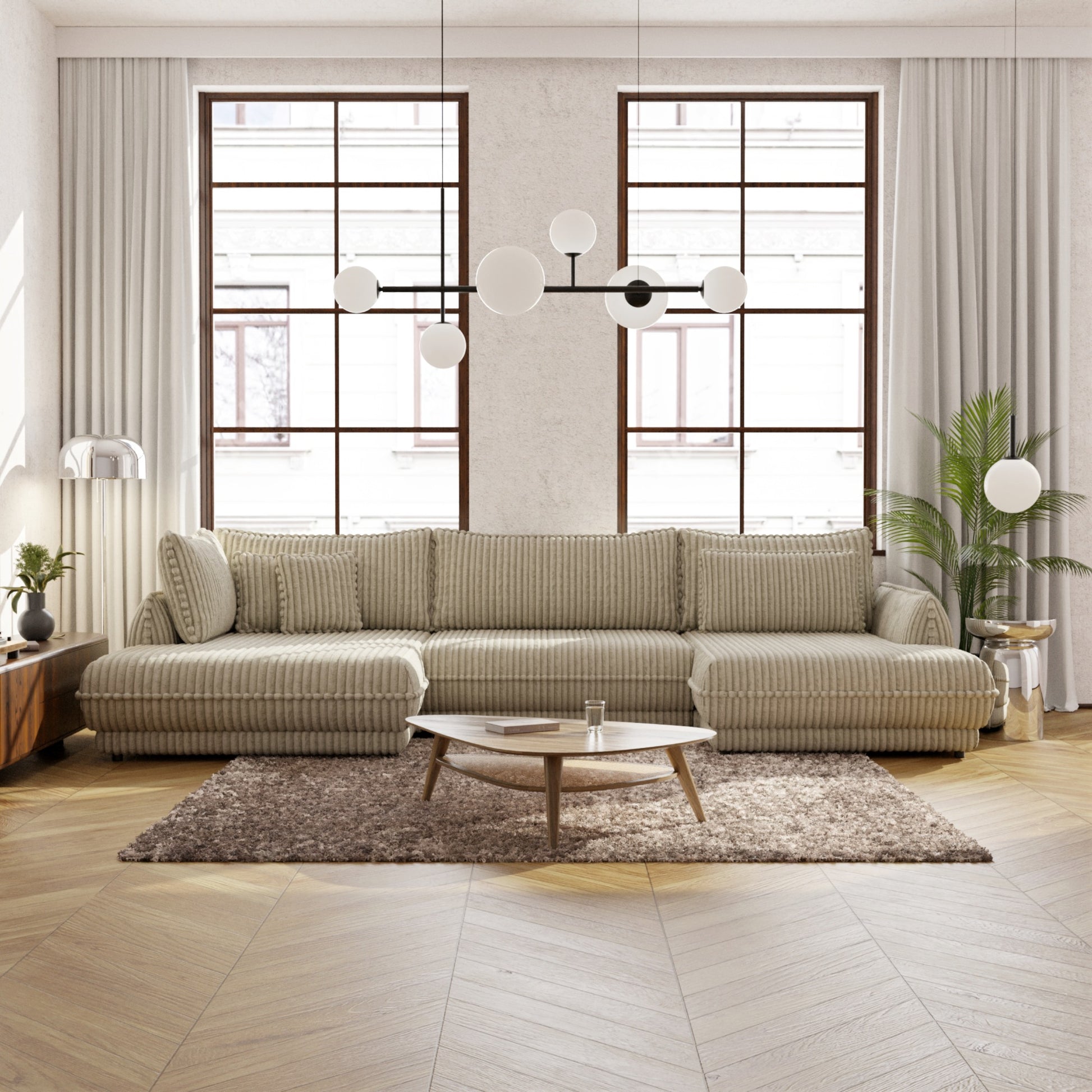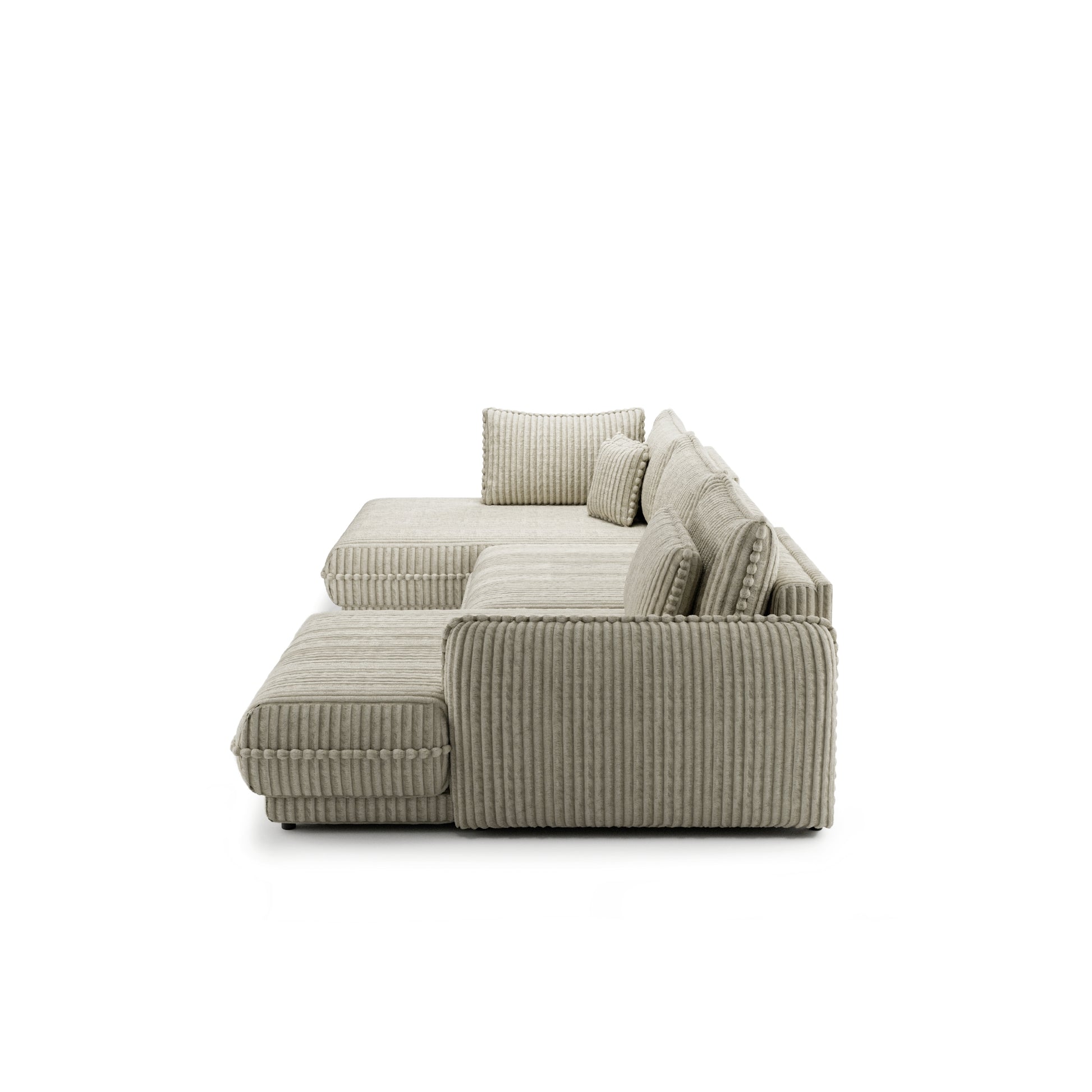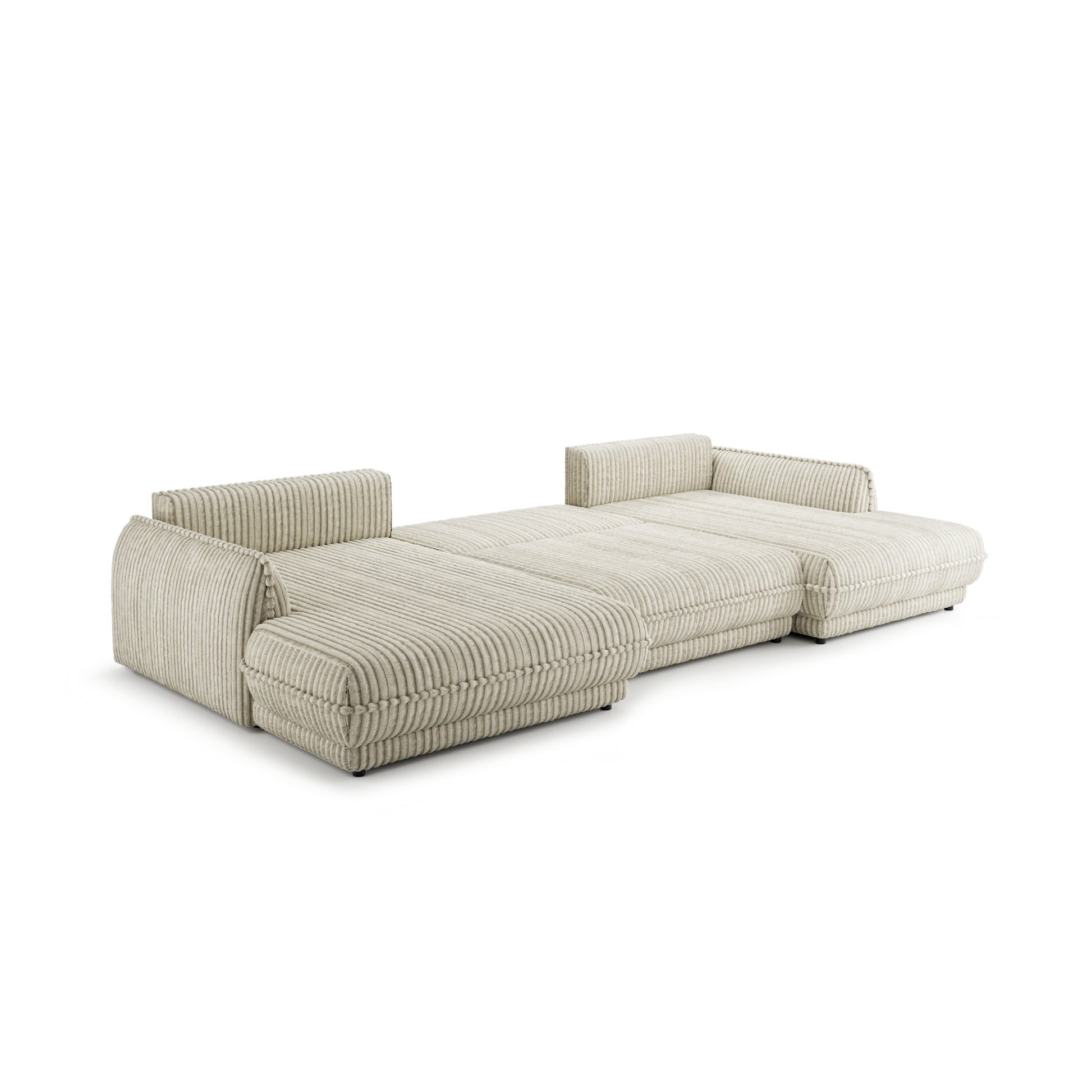 Narożnik został wyposażony w funkcję spania o powierzchni 318 × 160 cm, którą rozłożysz w kilka chwil dzięki prostemu mechanizmowi. To rozwiązanie sprawia, że Mojave III sprawdzi się nie tylko w codziennym użytkowaniu, ale także jako wygodne łóżko dla gości. Dodatkowym atutem jest praktyczny pojemnik na pościel, który pozwala łatwo przechować koce i poduszki, dbając o porządek w salonie.