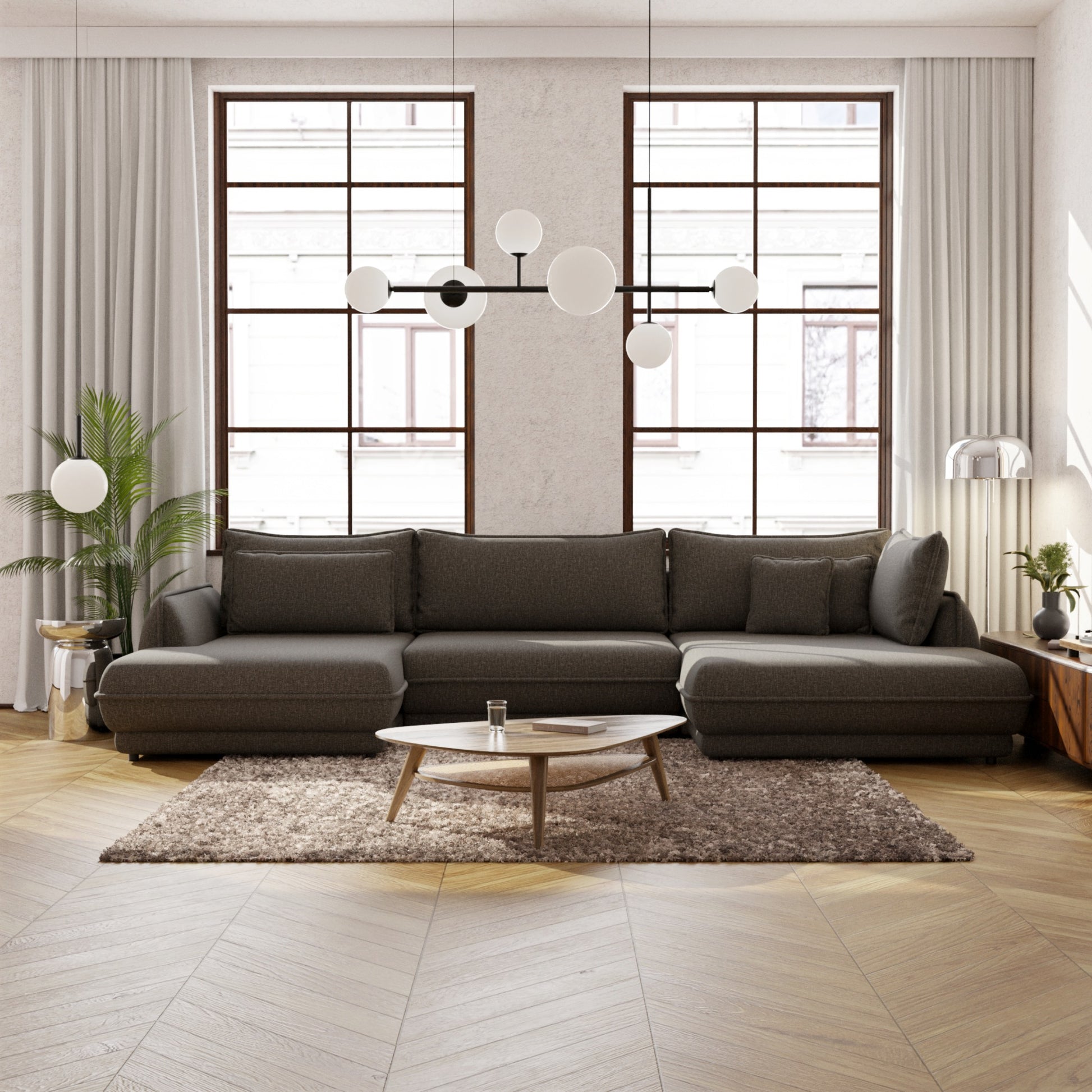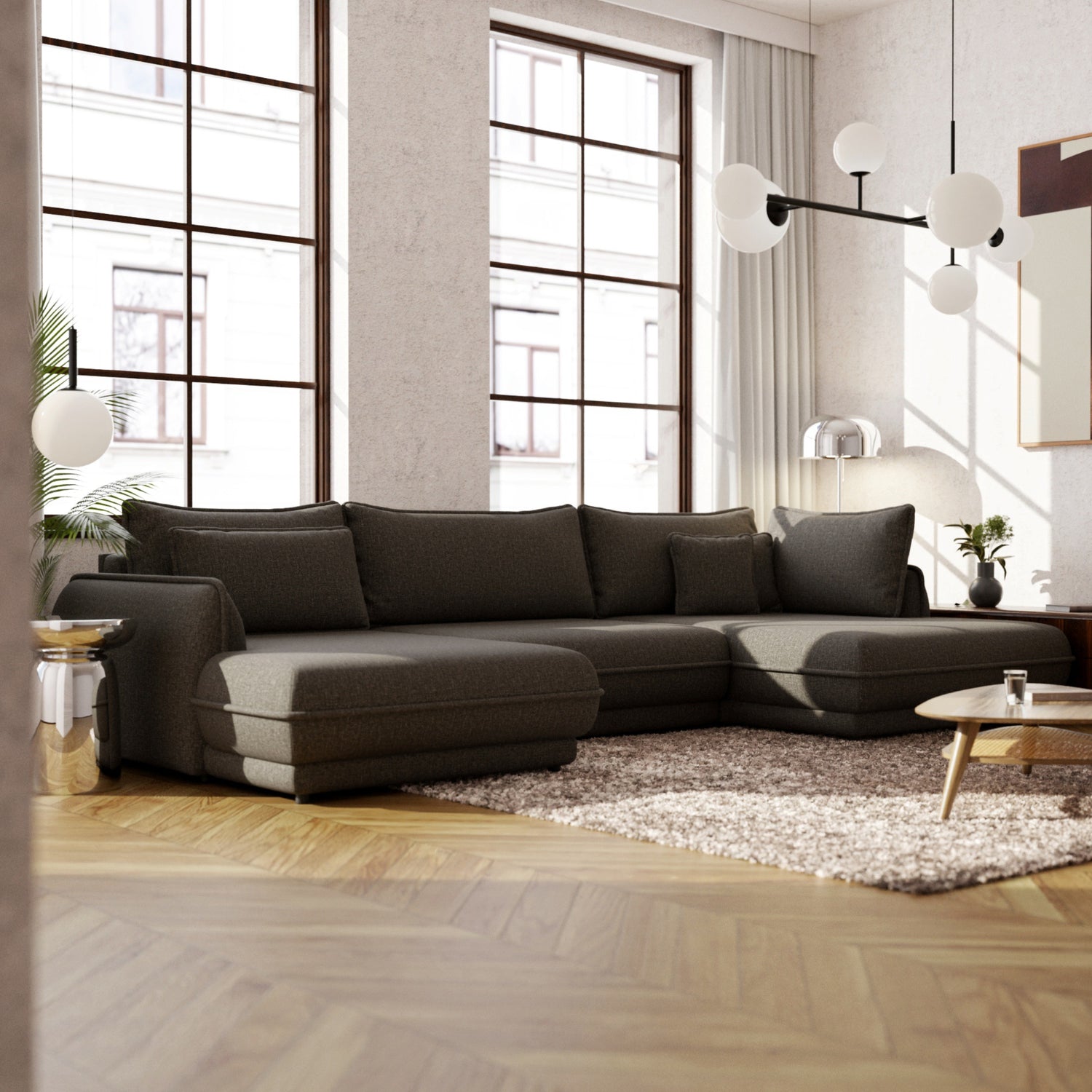 Narożnik został wyposażony w funkcję spania o powierzchni 318 × 160 cm, którą rozłożysz w kilka chwil dzięki prostemu mechanizmowi. To rozwiązanie sprawia, że Mojave III sprawdzi się nie tylko w codziennym użytkowaniu, ale także jako wygodne łóżko dla gości. Dodatkowym atutem jest praktyczny pojemnik na pościel, który pozwala łatwo przechować koce i poduszki, dbając o porządek w salonie.