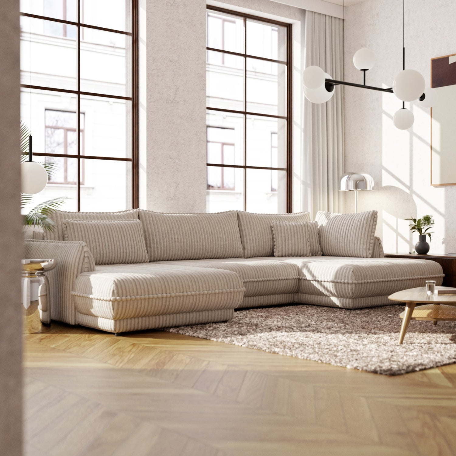 Mojave III to narożnik, który łączy w sobie minimalistyczną formę z maksymalną wygodą. Proste linie, subtelne detale i szerokie boki nadają mu solidny, a jednocześnie elegancki charakter, idealnie wpisujący się w aranżacje nowoczesne, skandynawskie, a także klasyczne.