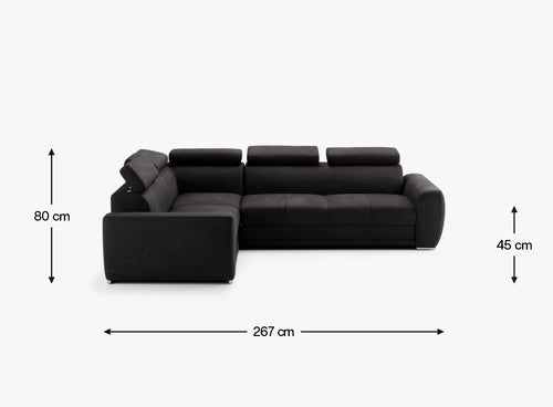 Narożnik lewostronny · funkcja spania · pojemnik na pościel · regulowane zagłówki
