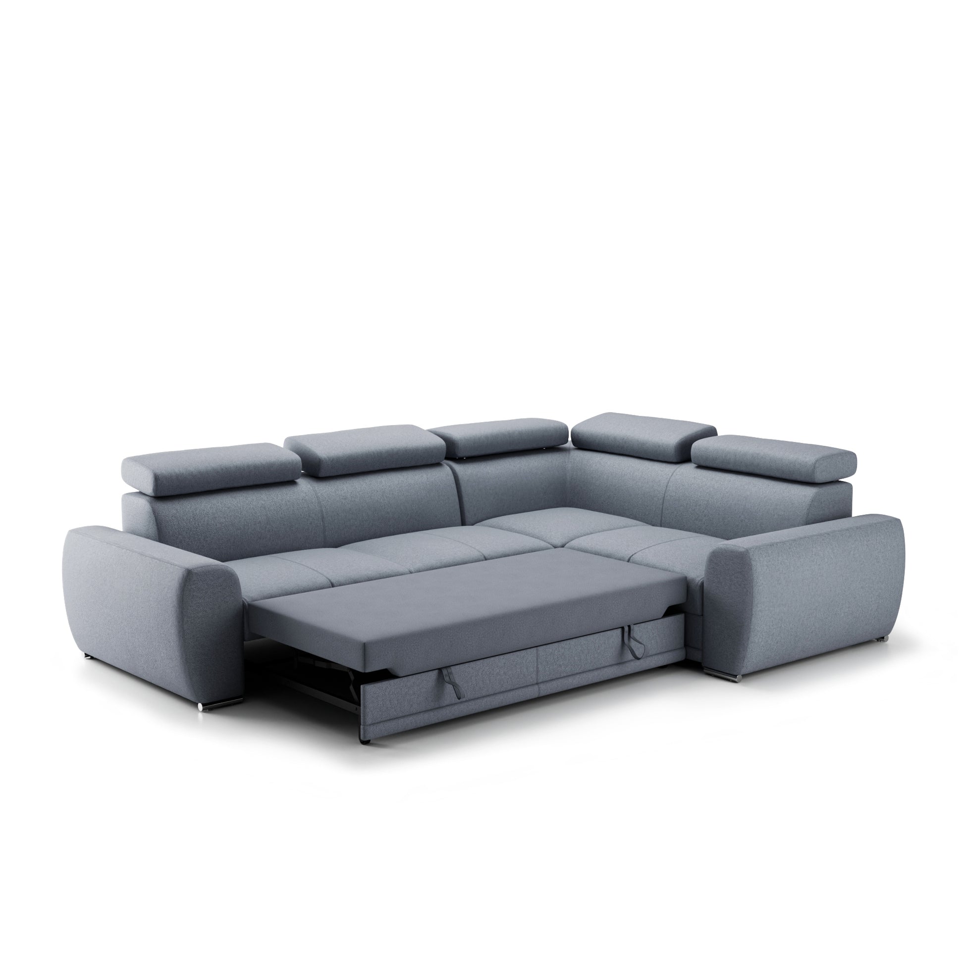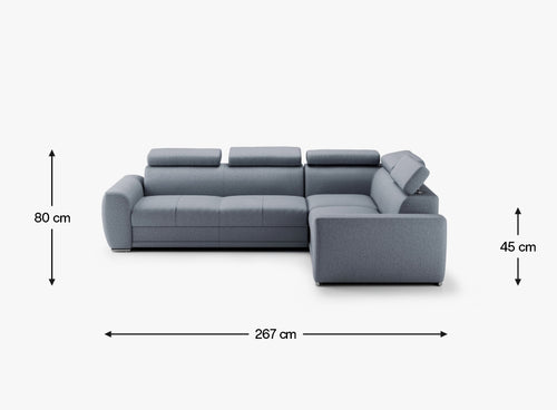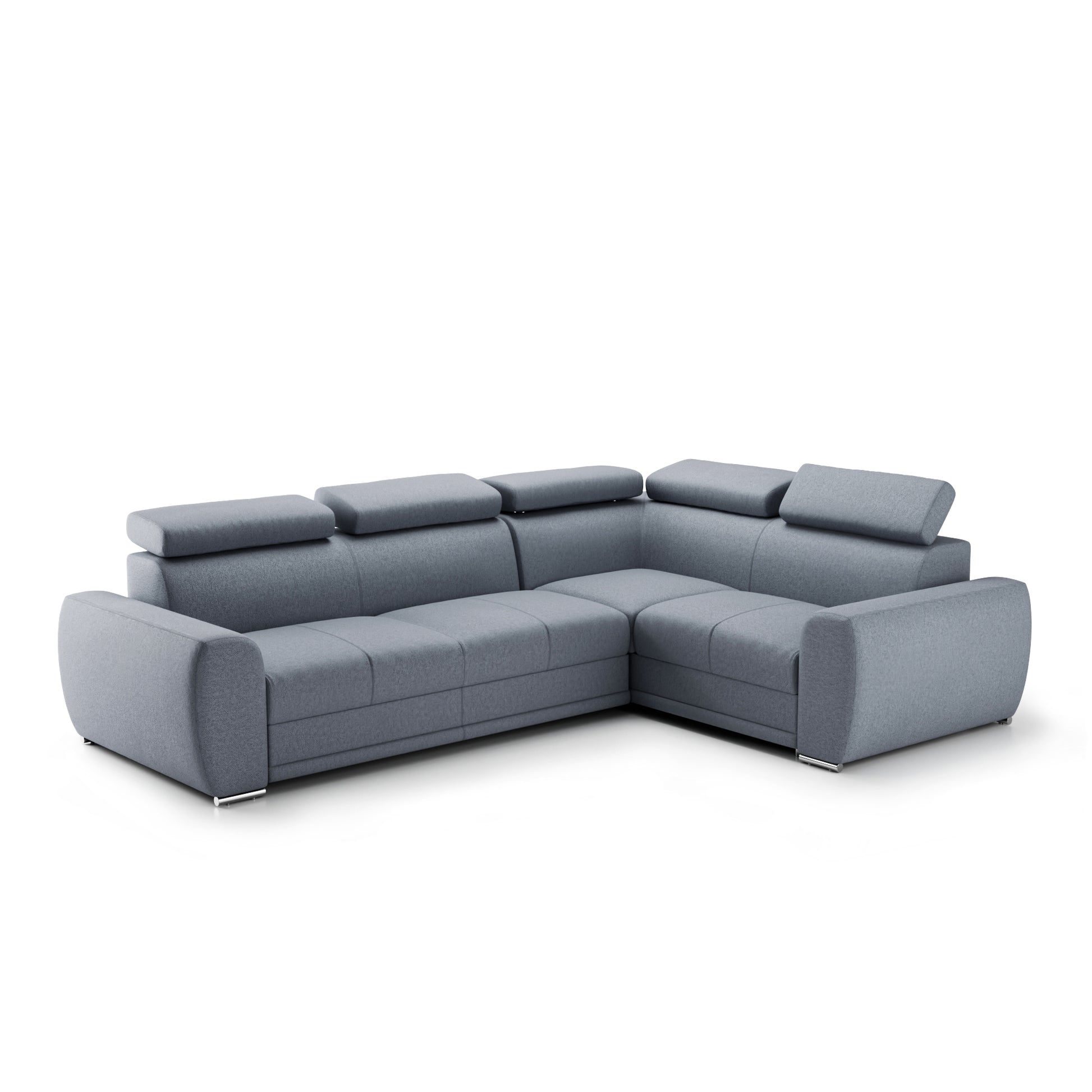 Narożnik prawostronny · funkcja spania · pojemnik na pościel · regulowane zagłówki