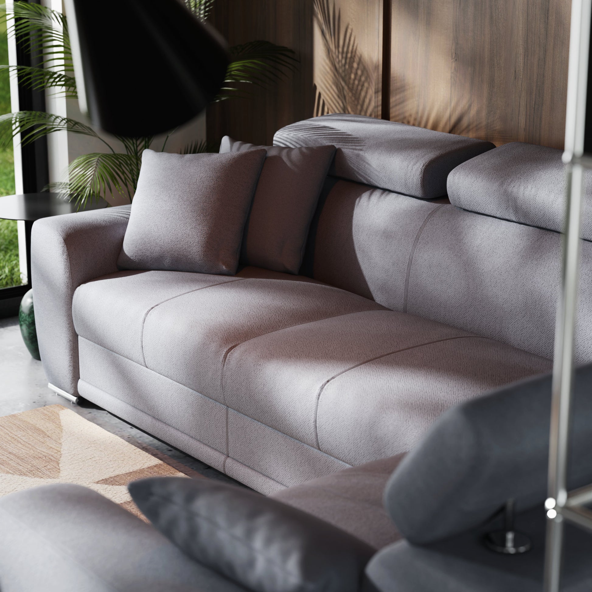 To, co naprawdę robi różnicę, to wielostopniowe zagłówki – każdy z nich możesz dopasować do siebie, by wygodnie zatopić się w popołudniowym relaksie lub wieczornym serialu. Miękkie, głębokie siedziska kryją w sobie sprężyny faliste, które dbają o idealne podparcie i wygodę, niezależnie od pozycji.