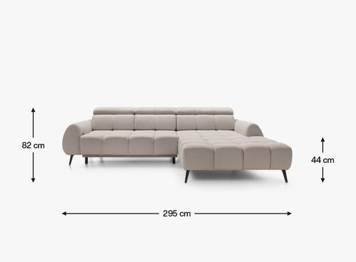 Do produkcji narożnika użyto materiałów zapewniających maksymalny komfort – zarówno podczas rodzinnych spotkań, jak i podczas chwili wytchnienia w pojedynkę. Duża, szeroka otomana i miękkie wypełnienie potęgują uczucie wygody, a elektryczny wysuw siedziska do 25 cm pozwala na stworzenie dodatkowej przestrzeni do relaksu.