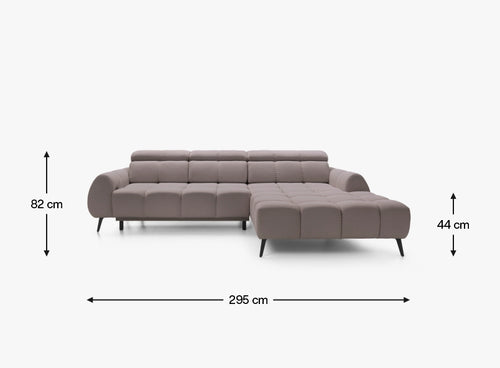 Do produkcji narożnika użyto materiałów zapewniających maksymalny komfort – zarówno podczas rodzinnych spotkań, jak i podczas chwili wytchnienia w pojedynkę. Duża, szeroka otomana i miękkie wypełnienie potęgują uczucie wygody, a elektryczny wysuw siedziska do 25 cm pozwala na stworzenie dodatkowej przestrzeni do relaksu.