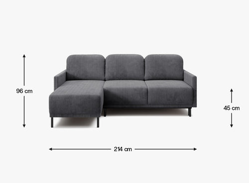 Jego uniwersalna konstrukcja pozwala na dowolne ustawienie – zarówno jako narożnik lewostronny, jak i prawostronny – dzięki czemu z łatwością dopasuje się do każdego układu wnętrza.