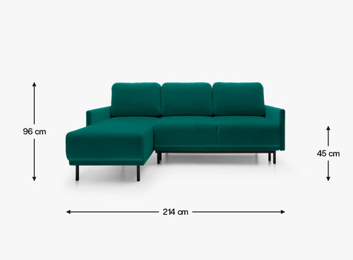 Jego uniwersalna konstrukcja pozwala na dowolne ustawienie – zarówno jako narożnik lewostronny, jak i prawostronny – dzięki czemu z łatwością dopasuje się do każdego układu wnętrza.