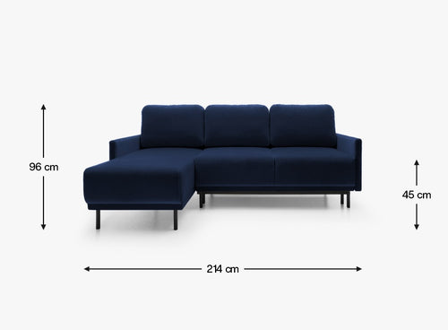 Jego uniwersalna konstrukcja pozwala na dowolne ustawienie – zarówno jako narożnik lewostronny, jak i prawostronny – dzięki czemu z łatwością dopasuje się do każdego układu wnętrza.