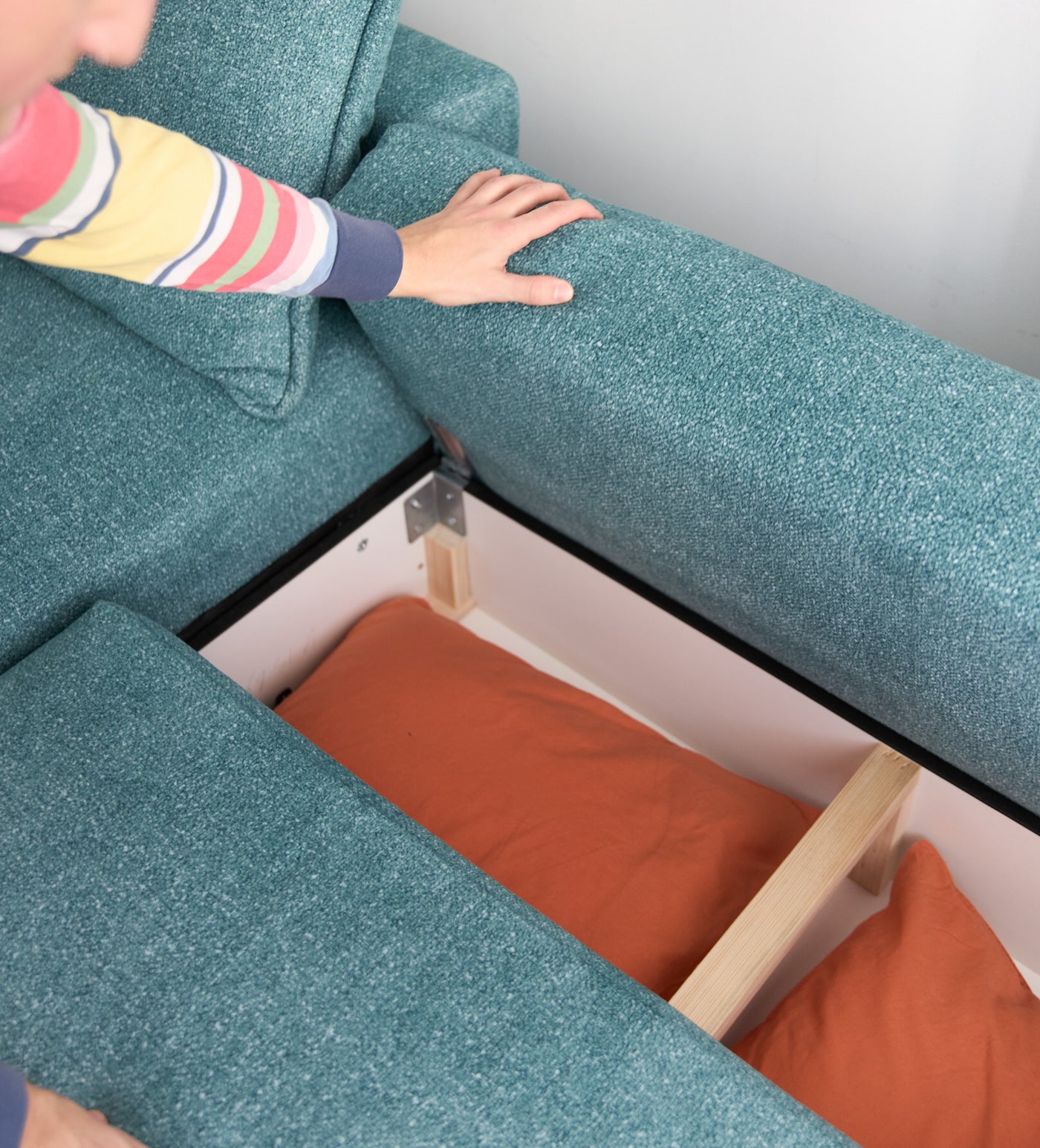 Narożnik Visby został zaprojektowany z myślą o praktyczności. Posiada pojemnik na pościel, który umożliwia wygodne przechowywanie poduszek, kołder i innych tekstyliów. Dzięki temu, Visby to nie tylko elegancka, ale także bardzo funkcjonalna opcja do salonu, pokoju gościnnego czy sypialni. Wszystko, czego potrzebujesz do komfortowego życia, jest na wyciągnięcie ręki.