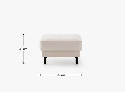 Puf Alameda to esencja minimalistycznej elegancji i funkcjonalnego komfortu. Jego zgrabna, kwadratowa forma o wymiarach 69 × 69 cm i wysokości 47 cm doskonale dopełnia aranżację salonu, sypialni czy garderoby. Subtelna linia siedziska wsparta na smukłych, czarnych nogach nadaje mu lekkości i nowoczesnego charakteru, dzięki czemu idealnie komponuje się zarówno z kolekcją Alameda, jak i z innymi meblami w nowoczesnym stylu.