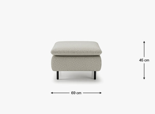 Puf Asti to nie tylko elegancki dodatek do sofy – to uniwersalny mebel, który doskonale odnajdzie się zarówno w salonie, jak i w sypialni. Jego kwadratowa forma o wymiarach 69 na 69 cm oraz minimalistyczna sylwetka sprawiają, że pasuje do wnętrz w różnych stylach – od klasycznych po nowoczesne.