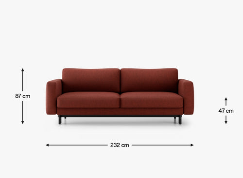 Ukryta w niej funkcja spania pozwala na błyskawiczną metamorfozę – z eleganckiej sofy w wygodne łóżko. Z kolei pojemny schowek na pościel to sprytna odpowiedź na potrzeby współczesnych wnętrz, gdzie każdy element powinien mieć swoje miejsce. Wysokie nogi dodają lekkości formie i sprawiają, że mebel unosi się optycznie nad podłogą, jednocześnie ułatwiając utrzymanie porządku.