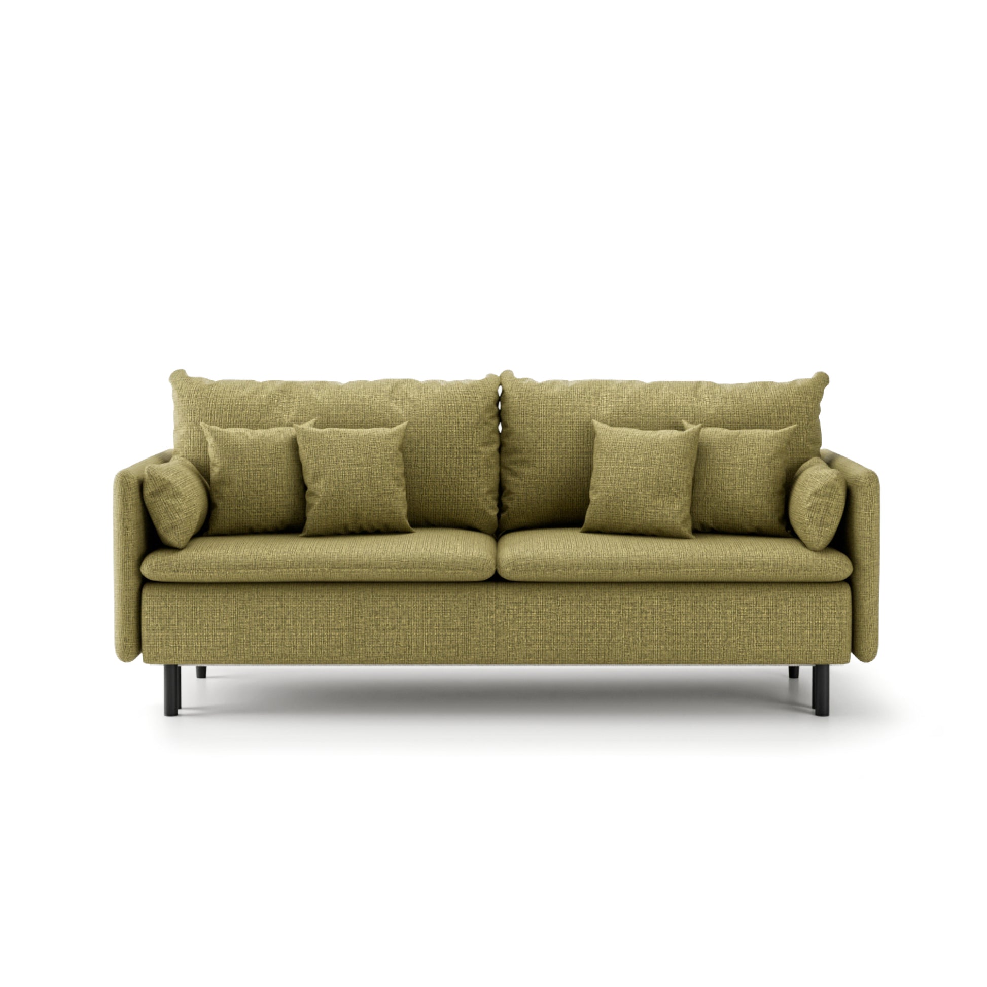 Sofa została wyposażona w łatwy w obsłudze system rozkładania DL, dzięki któremu w kilka chwil zmienia się w pełnowymiarowe łóżko o powierzchni 200 x 140 cm. Pojemny schowek na pościel to ukłon w stronę codziennej funkcjonalności – pozwala z łatwością utrzymać porządek.