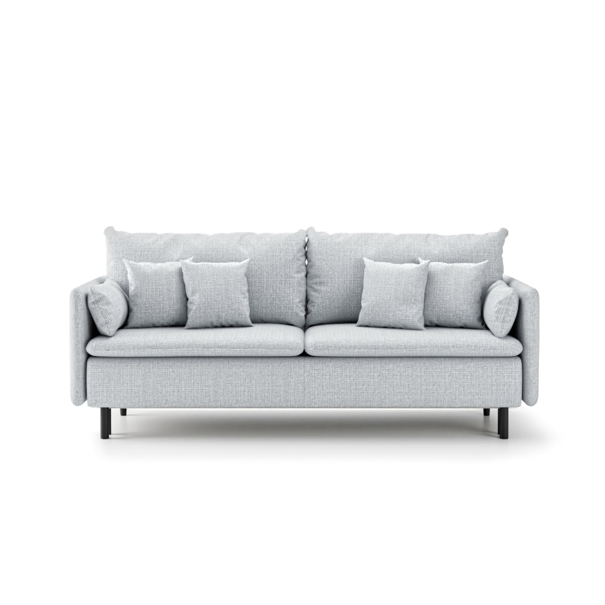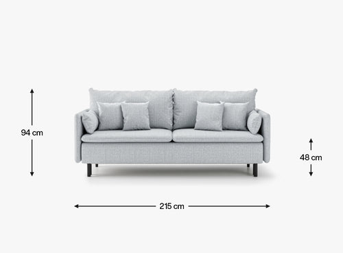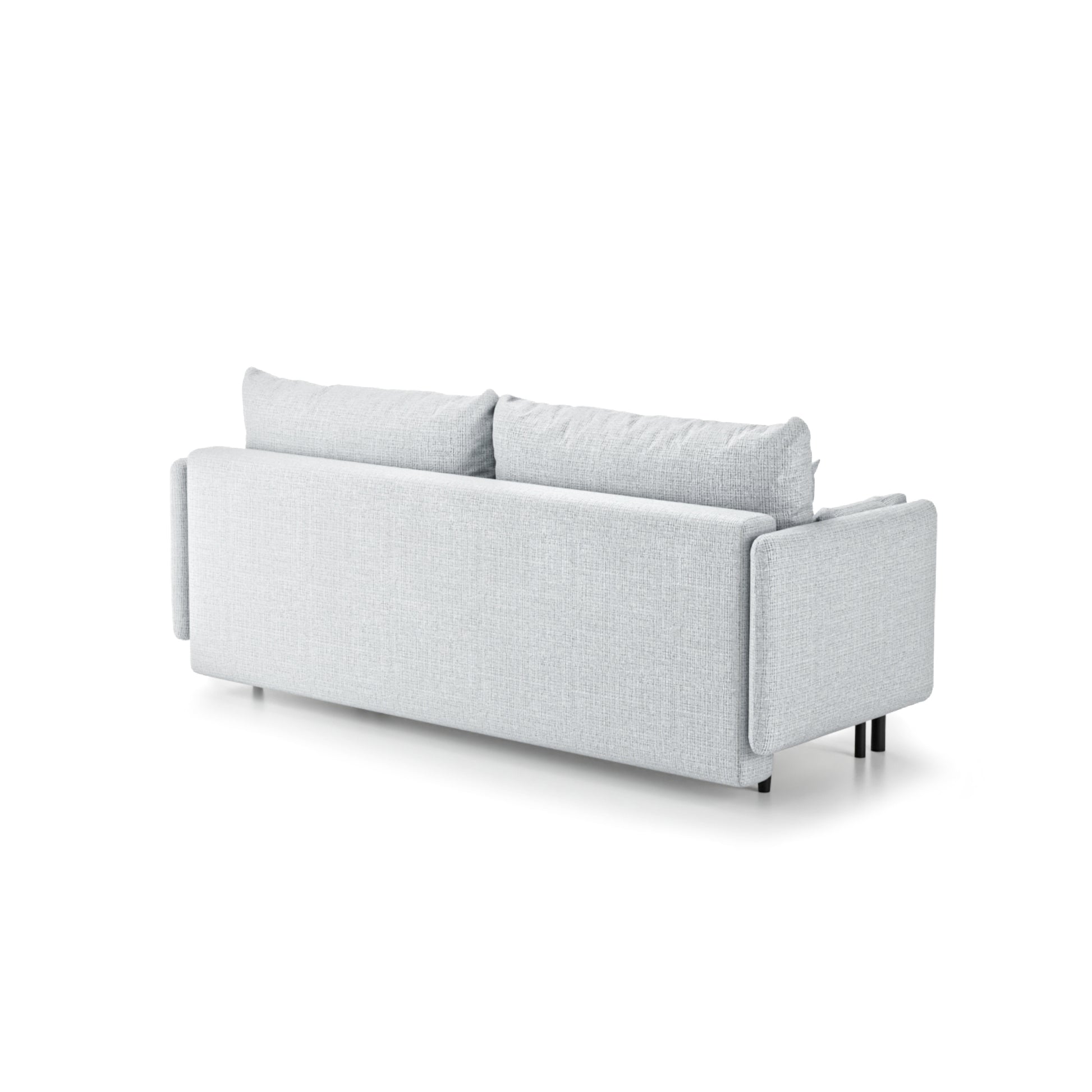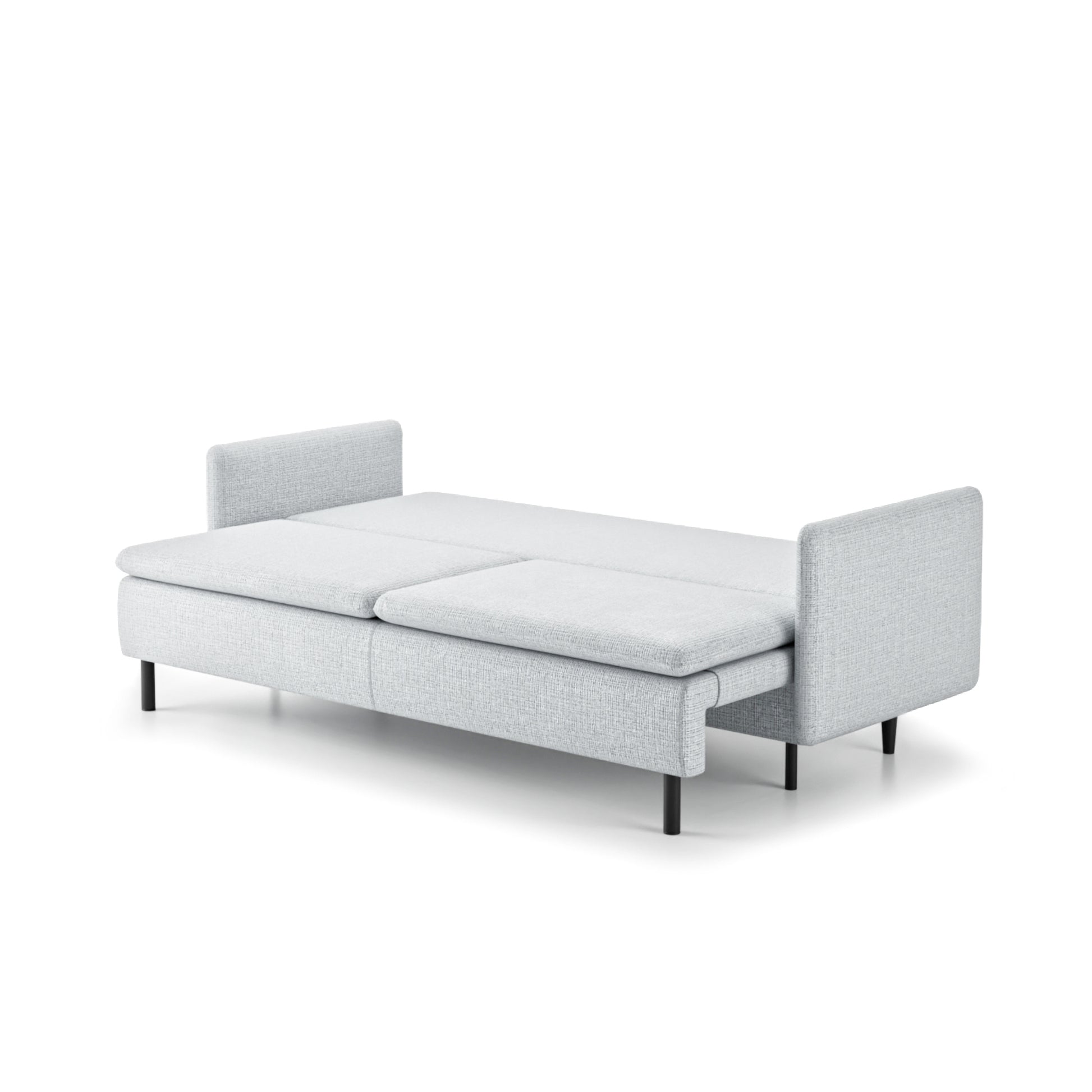 Sofa została wyposażona w łatwy w obsłudze system rozkładania DL, dzięki któremu w kilka chwil zmienia się w pełnowymiarowe łóżko o powierzchni 200 x 140 cm. Pojemny schowek na pościel to ukłon w stronę codziennej funkcjonalności – pozwala z łatwością utrzymać porządek.