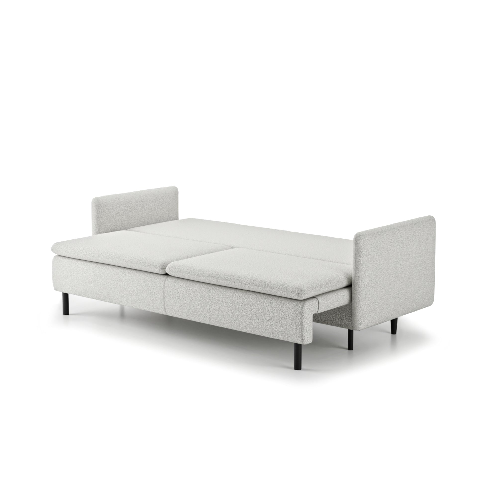 Sofa została wyposażona w łatwy w obsłudze system rozkładania DL, dzięki któremu w kilka chwil zmienia się w pełnowymiarowe łóżko o powierzchni 200 x 140 cm. Pojemny schowek na pościel to ukłon w stronę codziennej funkcjonalności – pozwala z łatwością utrzymać porządek.
