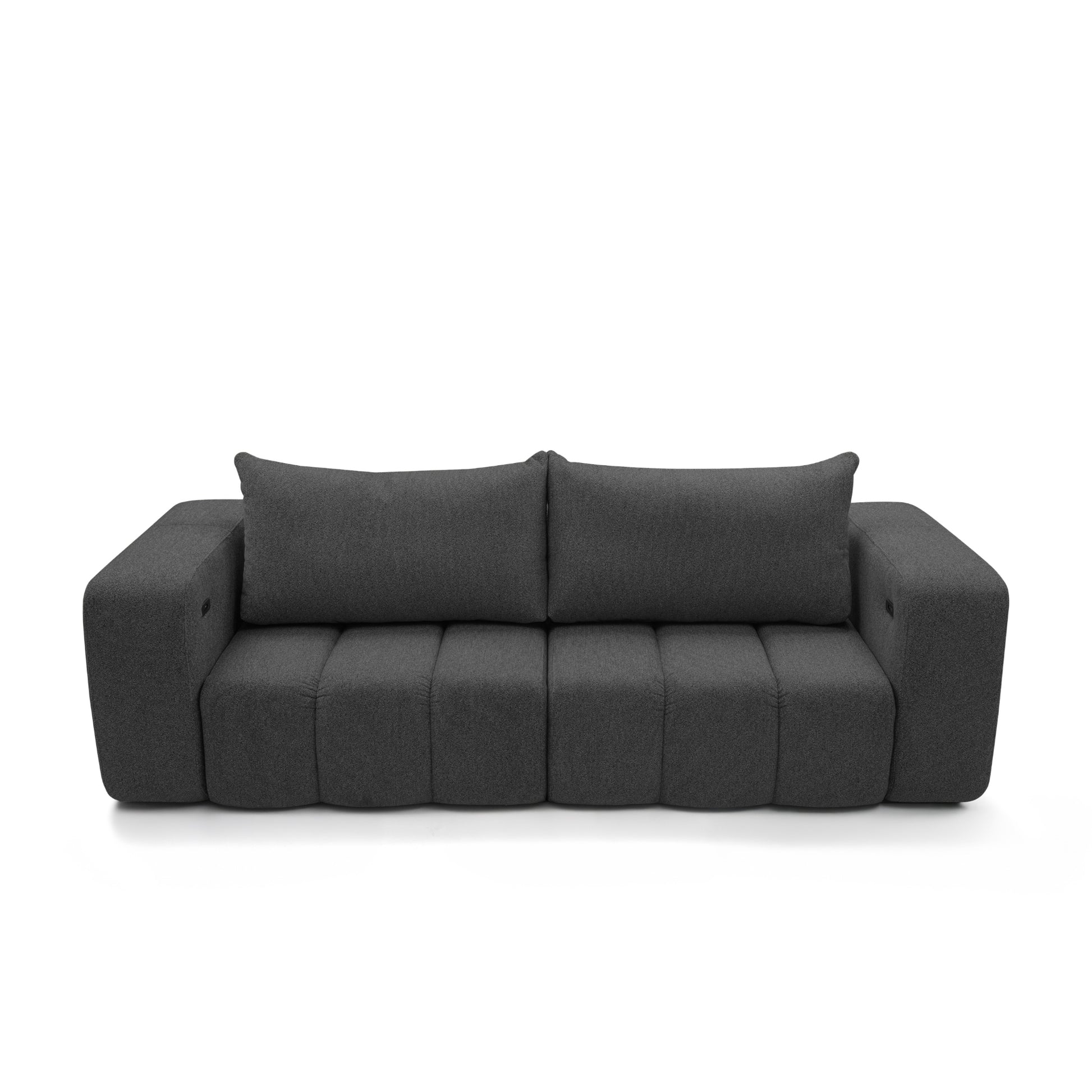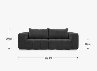 Sofa Bern to połączenie eleganckiej, geometrycznej formy i maksymalnej wygody, które doskonale sprawdzi się w każdym salonie. Jej masywna bryła z szerokimi podłokietnikami oraz głębokie siedzisko nadają wnętrzu wyjątkowego charakteru i podkreślają styl aranżacji. Duże, miękkie poduszki oparciowe gwarantują komfort podczas codziennego wypoczynku, a dekoracyjne przeszycia dodają sofie nowoczesnego wyrazu.
