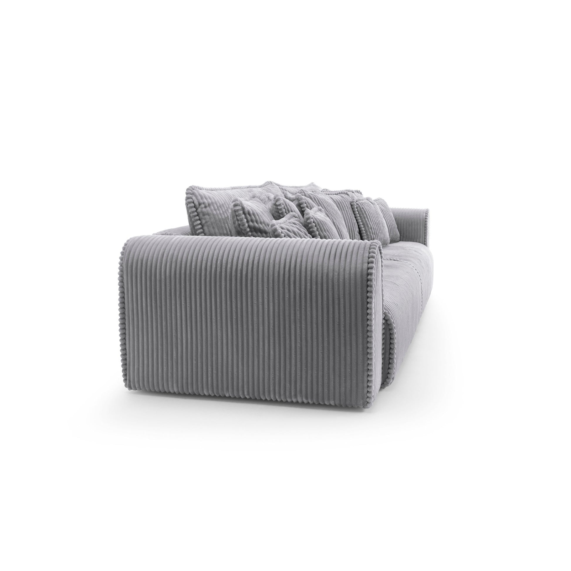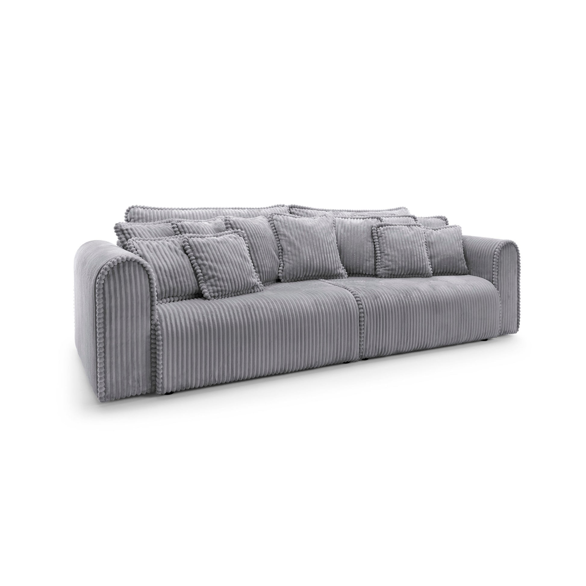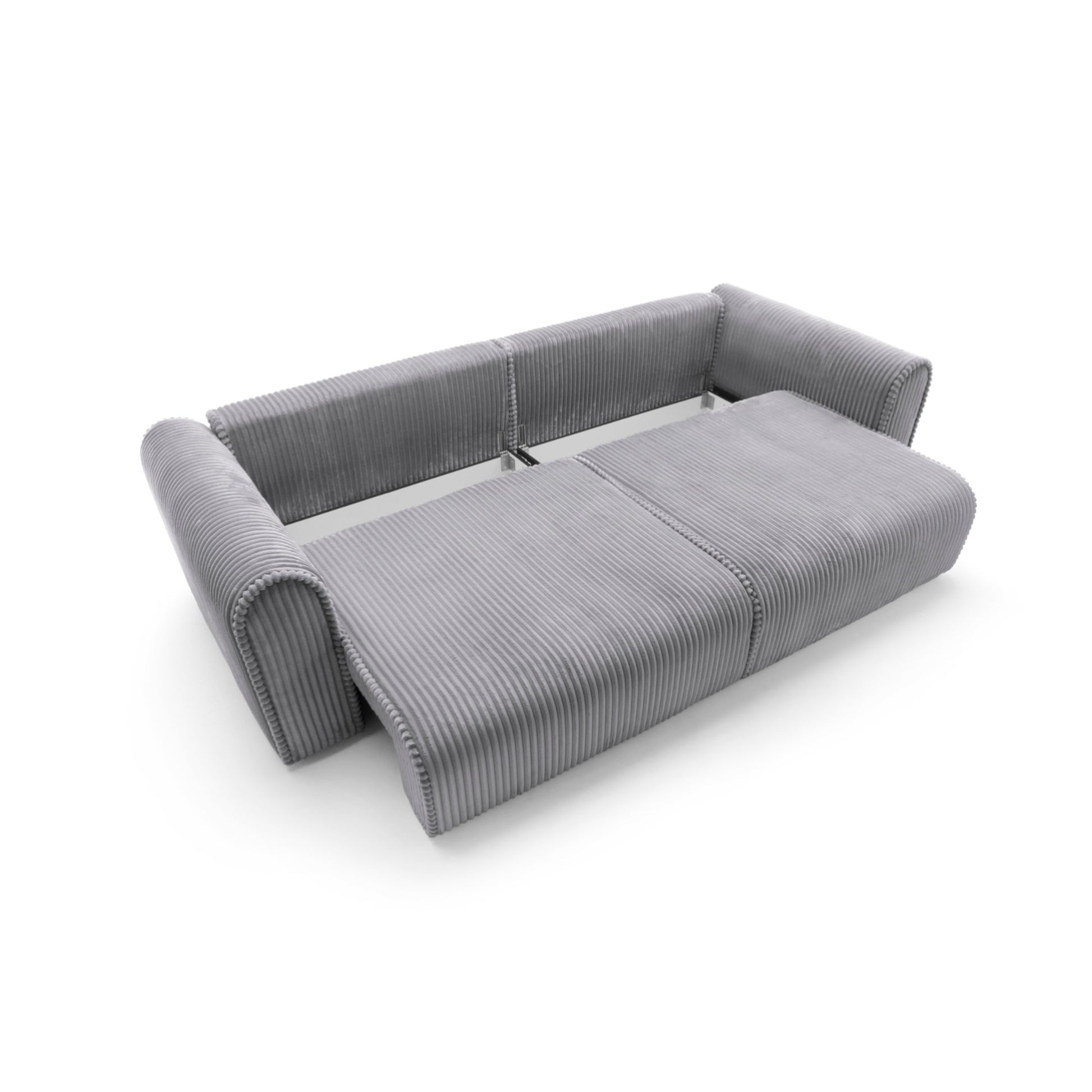 Big Buddy – sofa z funkcją spania i pojemnikiem na pościel to połączenie nowoczesnego designu, maksymalnej funkcjonalności i nieprzeciętnego komfortu. Jej monumentalna forma (302 cm szerokości) od razu przyciąga wzrok, a zaokrąglone kształty i pionowe przeszycia nadają jej stylowego, przytulnego charakteru. Tapicerowana sztruksem Tilia 90 – tkaniną o wysokiej odporności na ścieranie (90 000–100 000 cykli Martindale’a) i przyjazną zwierzętom – świetnie sprawdza się w codziennym użytkowaniu.