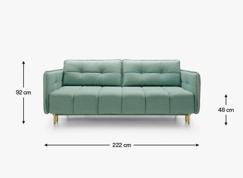 Jednak wygląd to nie wszystko! Sofa Cavola zapewnia wyjątkowy komfort. Specjalne wypełnienia sprawiają, że możesz w pełni się zrelaksować po długim dniu. Funkcja rozkładania zapewnia dodatkową przestrzeń do spania dla domowników lub niespodziewanych gości, a pojemny schowek na pościel pozwala przechowywać rzadziej używane rzeczy.