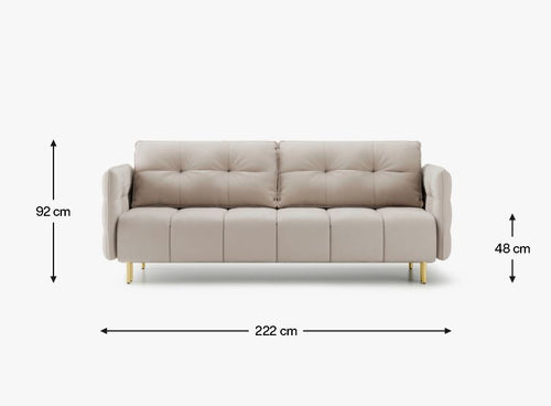 Jednak wygląd to nie wszystko! Sofa Cavola zapewnia wyjątkowy komfort. Specjalne wypełnienia sprawiają, że możesz w pełni się zrelaksować po długim dniu. Funkcja rozkładania zapewnia dodatkową przestrzeń do spania dla domowników lub niespodziewanych gości, a pojemny schowek na pościel pozwala przechowywać rzadziej używane rzeczy.