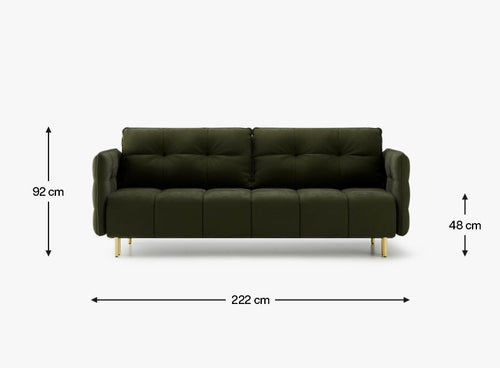 Bez trudu dopasujesz sofę do aranżacji swojego salonu. Wybór czarnych lub złotych nóg pozwoli podkreślić nowoczesny lub elegancki, glamour’owy styl wnętrza. Możesz także wzbogacić ją o dodatkowe, gładkie poduszki dekoracyjne.