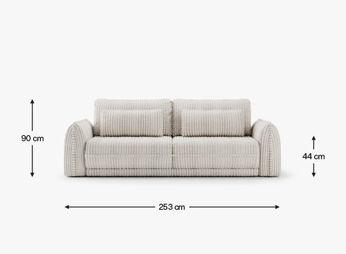 Największe zalety tej kanapy to szerokie podłokietniki oraz dwie obszerne poduszki oparciowe, które gwarantują doskonałe podparcie dla pleców, oferując jednocześnie wyjątkowy komfort. Podczas rodzinnych spotkań siedzenie na sofie będzie prawdziwą przyjemnością, a miękkie, przestronne siedzisko uczyni ją ulubionym miejscem na popołudniową drzemkę dla każdego domownika.