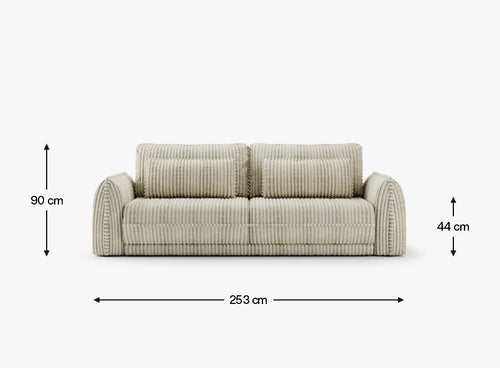 Największe zalety tej kanapy to szerokie podłokietniki oraz dwie obszerne poduszki oparciowe, które gwarantują doskonałe podparcie dla pleców, oferując jednocześnie wyjątkowy komfort. Podczas rodzinnych spotkań siedzenie na sofie będzie prawdziwą przyjemnością, a miękkie, przestronne siedzisko uczyni ją ulubionym miejscem na popołudniową drzemkę dla każdego domownika.