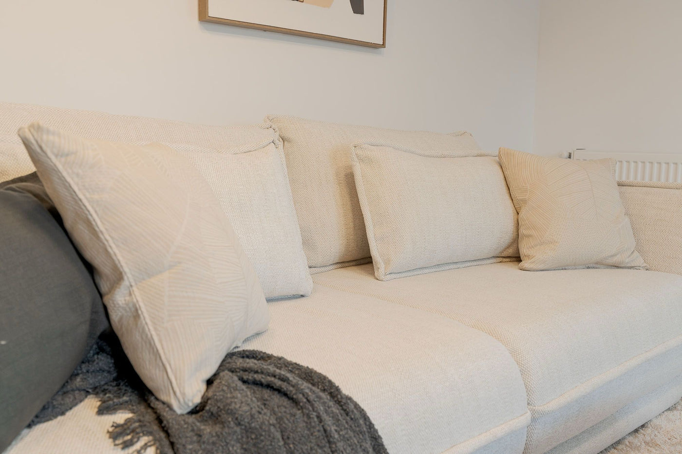 Połączenie nowoczesnej estetyki z wysoką funkcjonalnością zapewnia relaks na najwyższym poziomie. Elegancję sofy podkreślają ozdobne przeszycia z kedry, które zdobią zarówno mebel, jak i poduszki. Całość prezentuje się niezwykle stylowo i gustownie.