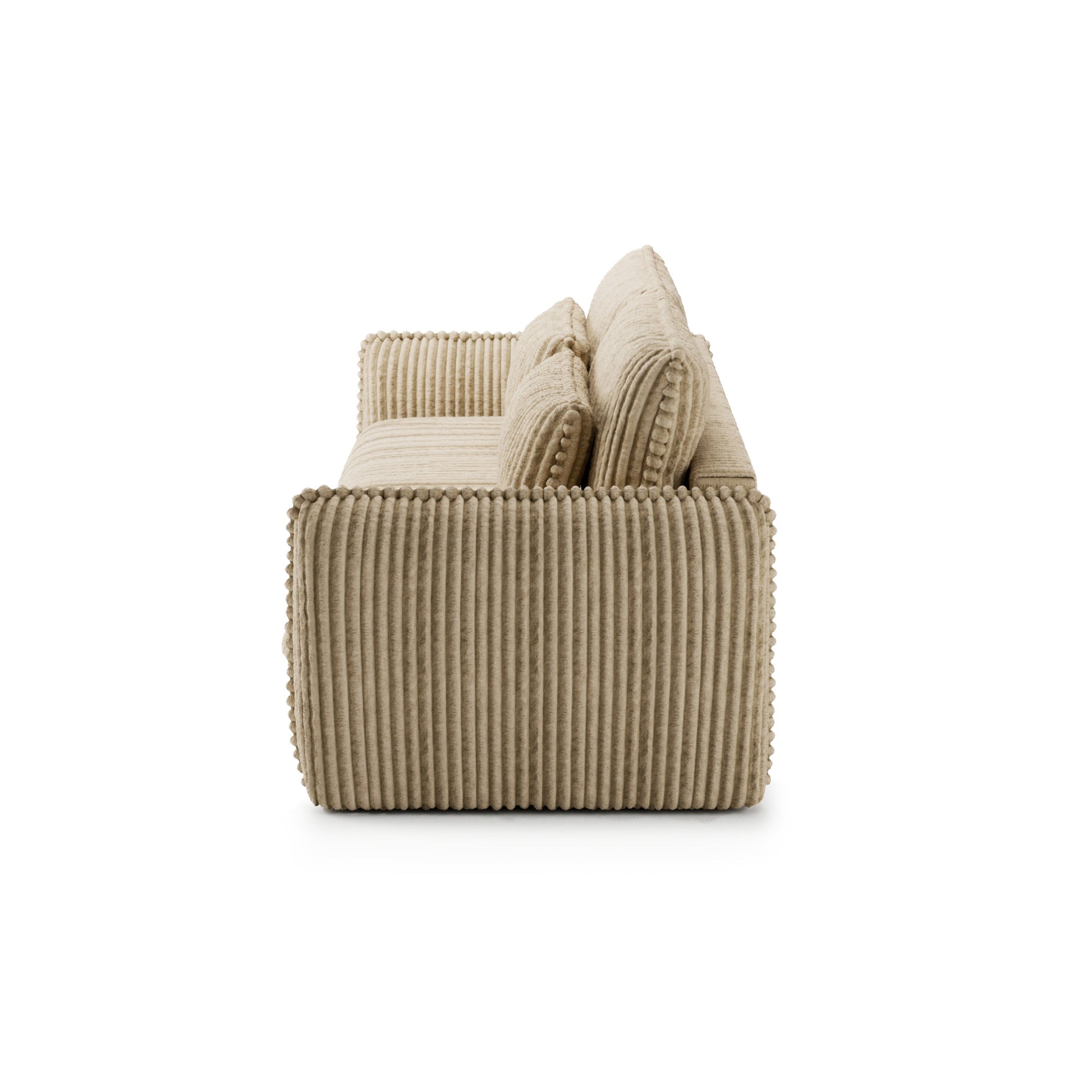 Największe zalety tej kanapy to szerokie podłokietniki oraz dwie obszerne poduszki oparciowe, które gwarantują doskonałe podparcie dla pleców, oferując jednocześnie wyjątkowy komfort. Podczas rodzinnych spotkań siedzenie na sofie będzie prawdziwą przyjemnością, a miękkie, przestronne siedzisko uczyni ją ulubionym miejscem na popołudniową drzemkę dla każdego domownika.